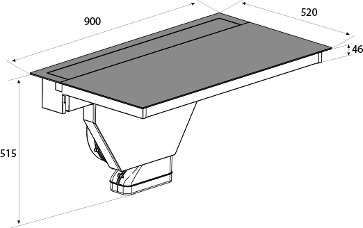 Plošča je na voljo samo v širini 90 cm. Motor je nameščen horizontalno direktno pod ploščo.