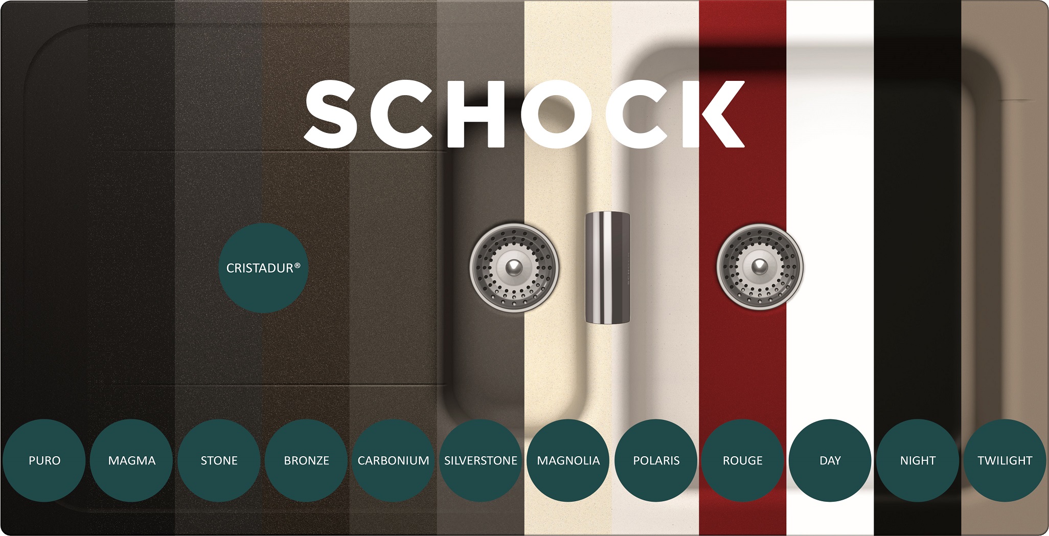 Pri SCHOCKu vam nudimo preko 420 različnih kombinacij med vsemi modeli in barvami korit.