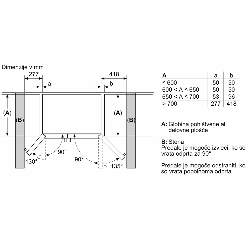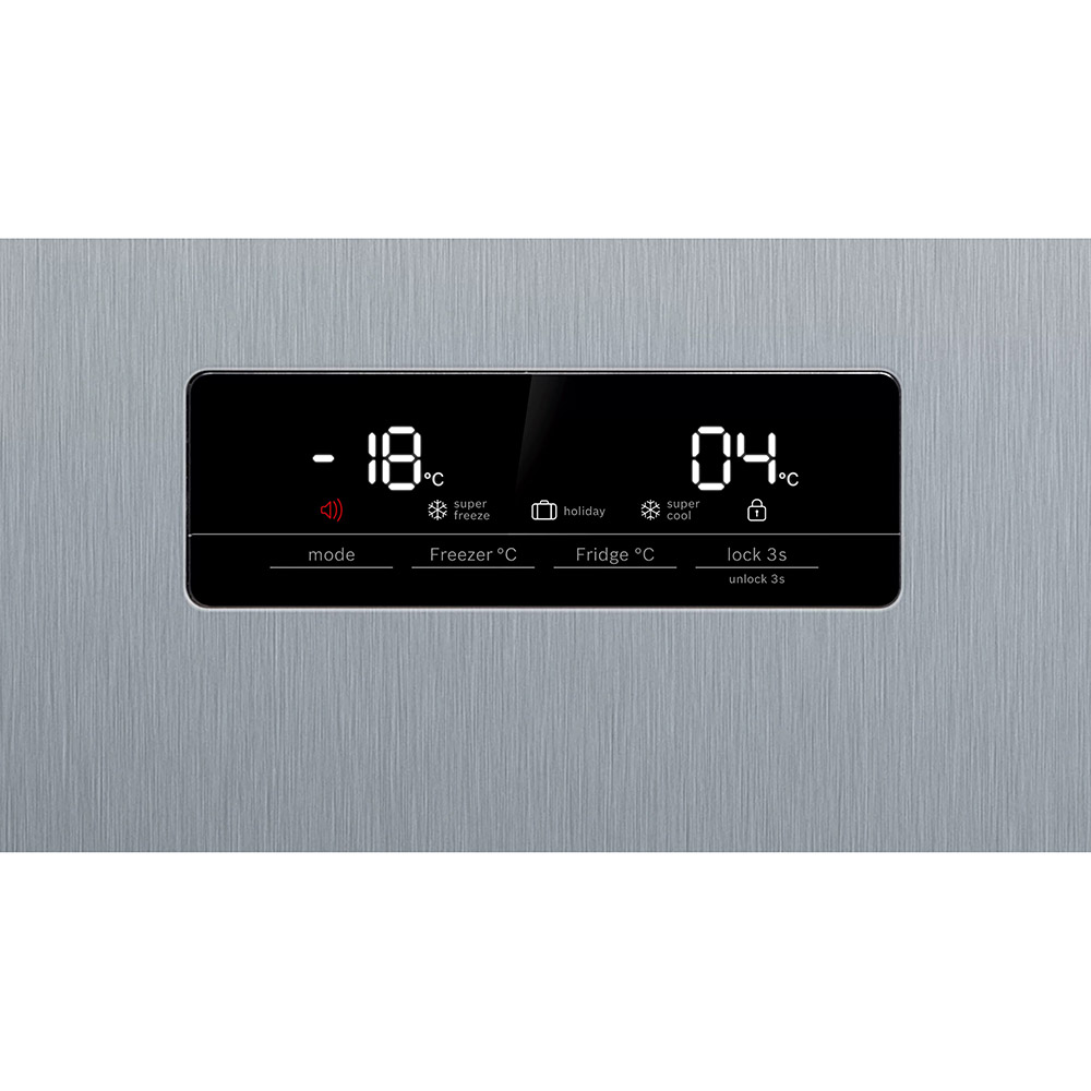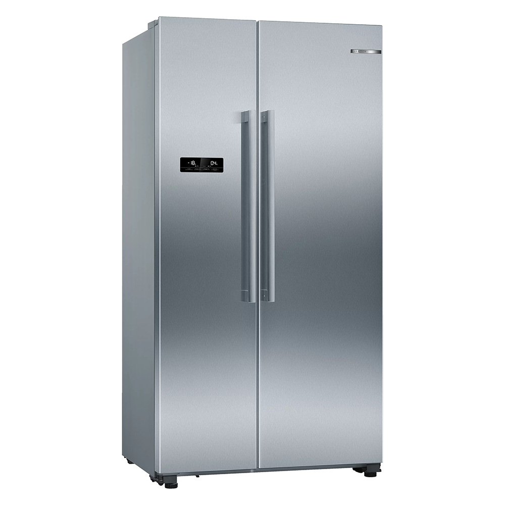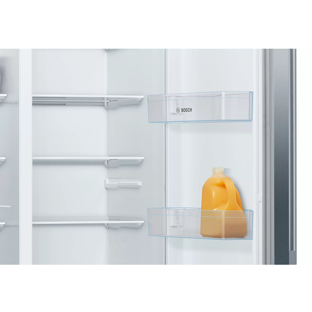 Ameriški hladilnik Bosch KAN93VIFP. Če želite ustvariti več lahko preprosto odstranite vse varnostne steklene rešetke iz zamrzovalnega prostora. Ko je aktivirana funkcija Holiday Mode, je temperatura hladilnega dela približno +14°C, temperatura zamrzovalnega dela pa približno -18°C, kar ščiti zamrznjeno hrano in preprečuje potrato energije. Vaše ohlajene pijače pa bodo še boljšega okusa s svežimi ledenimi kockami iz praktičnega, odstranljivega predala IceTwister.