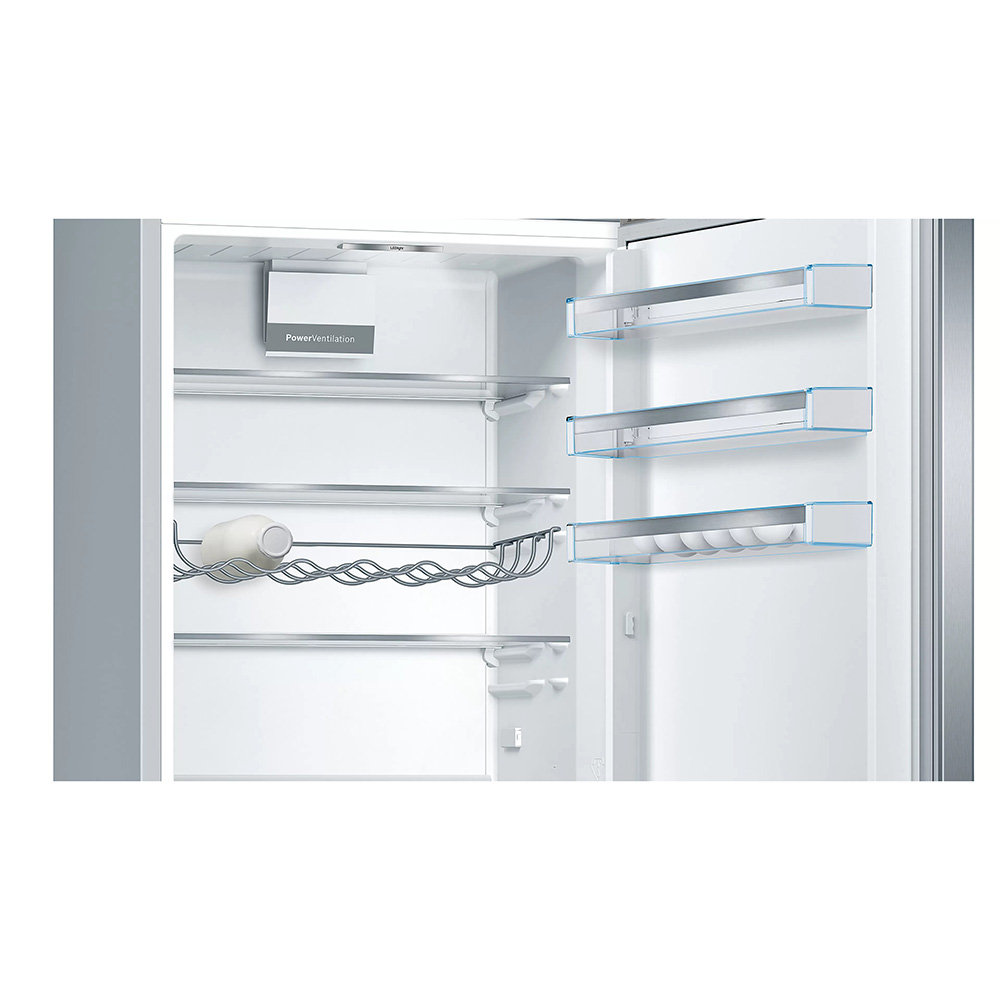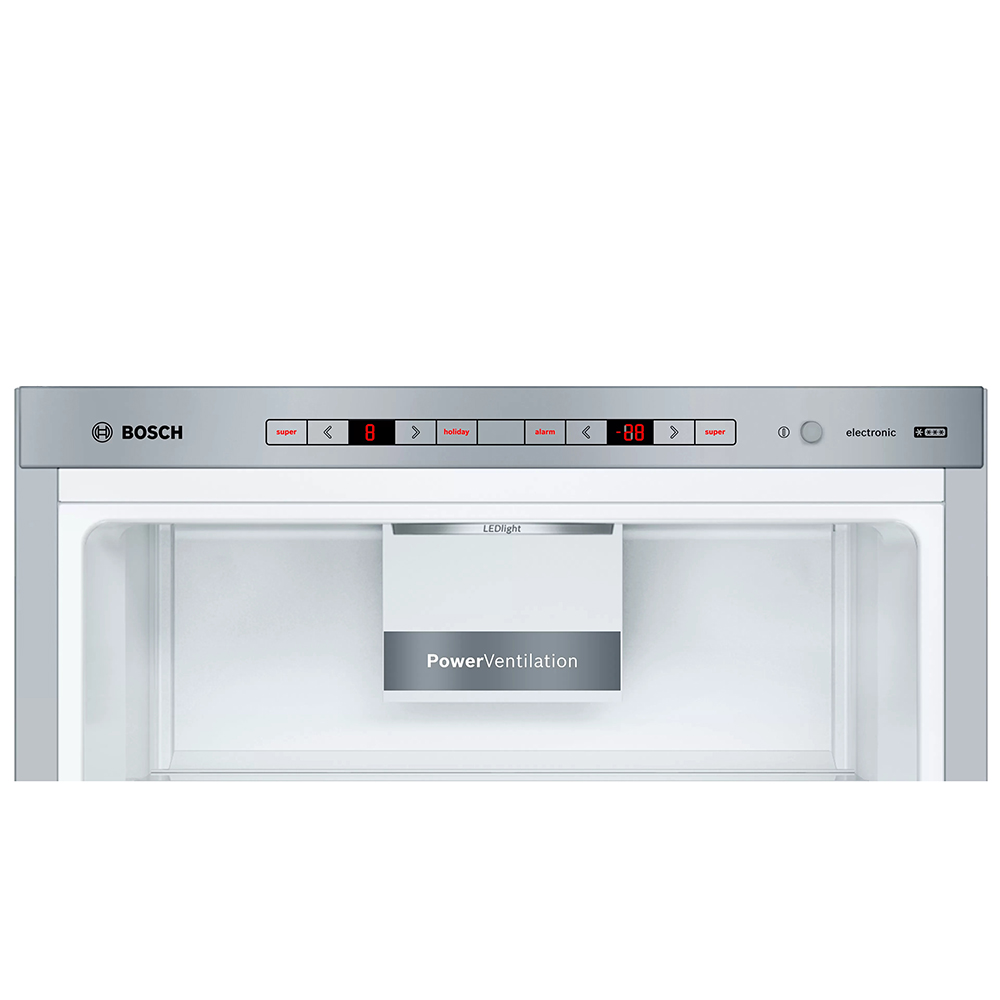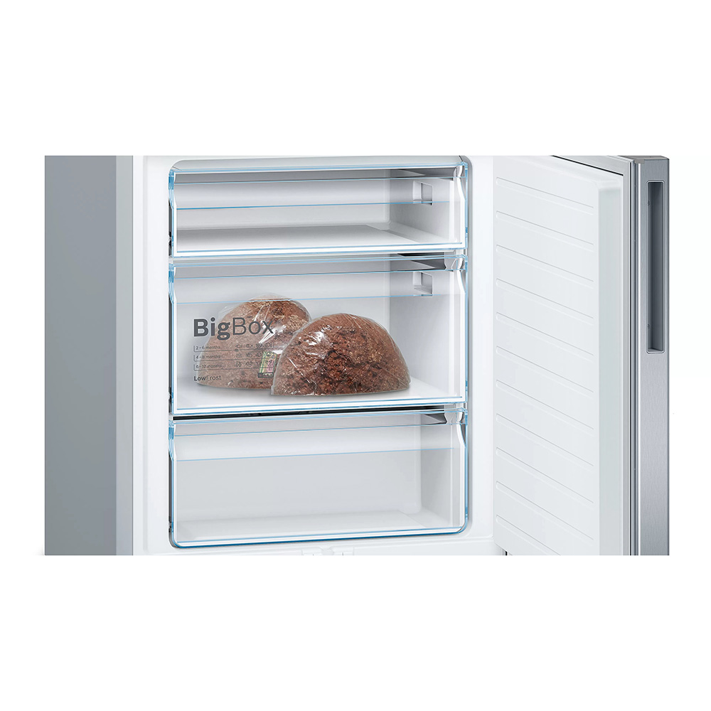 Prostostoječ hladilnik z zamrzovalnikom spodaj Bosch KGE49AICA. Navdušil vas bo z sistemom VitaFresh, ki živila ohranja sveža dlje, LED osvetlitvijo notranjosti, za lažjo vidljivost, avtomatskim super zamrzovanjem, predalom Big Box globokim predalom za shranjevanje večjih živil in polico Easy Acsess za lažji dostop do živil.