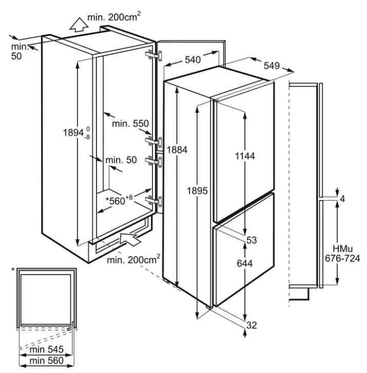 Vgradne dimenzije (VxŠxG mm): 1894x560x550