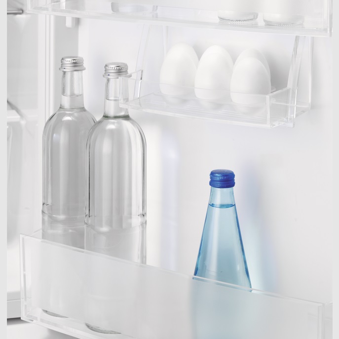 Vgradni hladilnik Electrolux LFB3AF82R višine 82 cm je namenjen vgradnji pod pult. Spada v energijski razred F in ima prostornino hladilnega dela 93 l in prostornino zamrzovalnega dela 16 l. Za shranjevanje ima na voljo 1 veliko stekleno polico, 1 malo stekleno polico in 1 velik predal za sadje in zelenjavo v hladilnem delu in 1 zamrzovalni predal. Upravljanje temperature je elektronsko, na dotik v hladilniku.