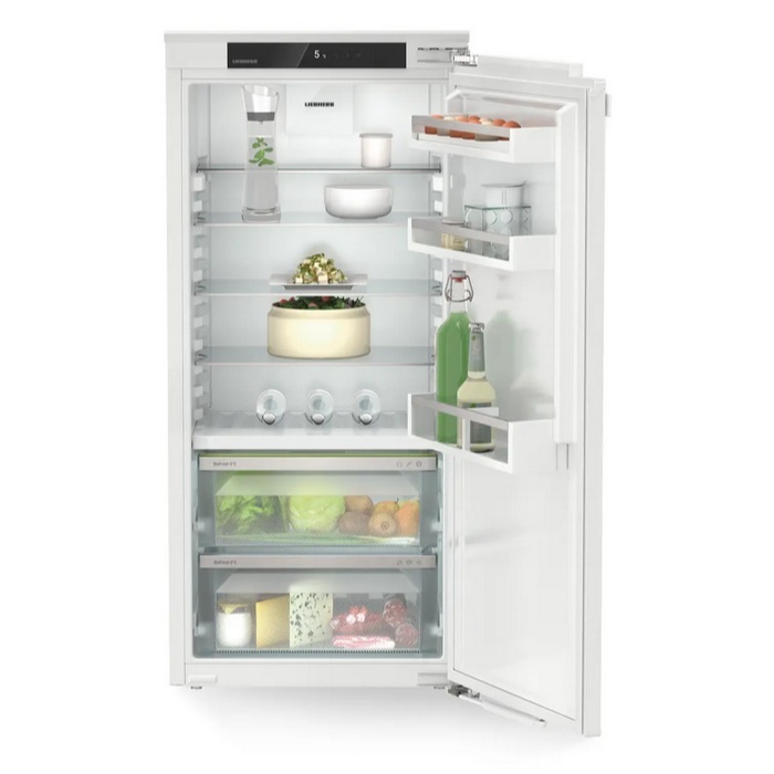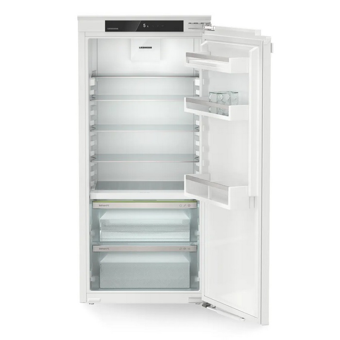 Vgradni hladilnik Liebherr IRBc 4120 Plus s sistemom BioFresh. Enostavno uporabo omogoča upravljanje na dotik. Hladilnik ima 5 odlagalnih površin, deloma izvlečna teleskopska vodila s samodejnim zapiranjem in sistemom za mehko zapiranje, alarm vrat za hlajenje in zaklep zaslona.