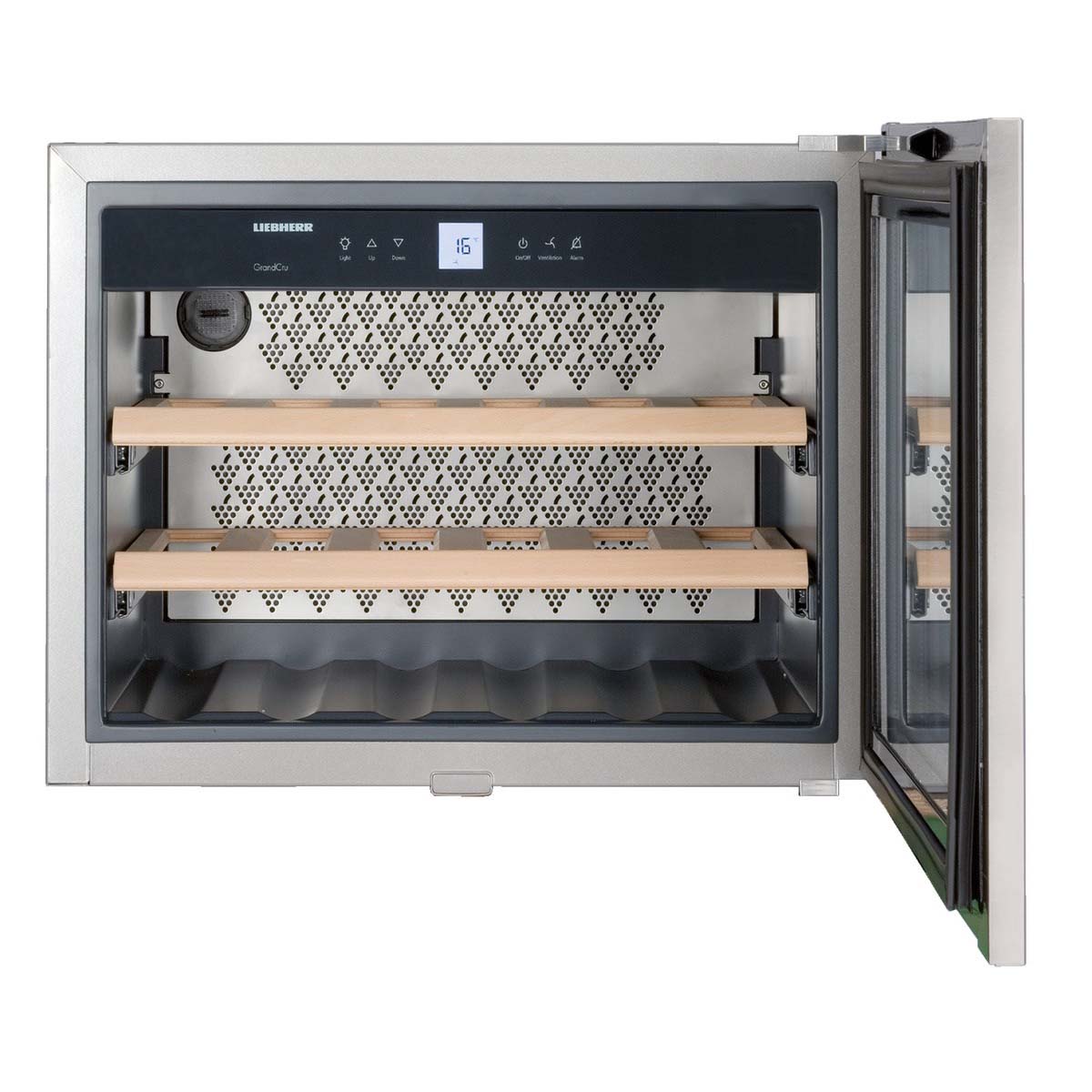 Vgradna vinska klimatska vitrina WKEes 553 GrandCru ima posebej zasnovan kompresor z izjemno nizko ravnjo vibracij zagotavljaja mirno shranjevanje vina. Z več kot 50-odstotno vlažnostjo so v vinski omari zagotovljeni optimalni pogoji. Vlažnost v klimatskih posodah za vino lahko po potrebi prilagodite z gumbom za prezračevanje.
