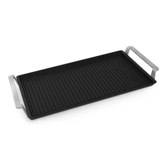 S ploščo za žar lahko celo leto uživate dobrote z žara. Natančna regulacija toplotne indukcije poskrbi, da bodo zrezki odlično pečeni, šparglji hrustljavi in pokrovače hrustljavo, vendar mehko zapečene. Funkcija Bridge zajema dve kuhališči, kar vam omogoča, da pečete na žaru obsežnejše obroke, tako na narebreni kot ravni strani. Plošča ima debelo aluminijasto dno in prevleko proti prijemanju, ki jo je enostavno očistiti. Primerna je za pripravo hrane v pečici do 200°C in za indukcijske kuhalne plošče.