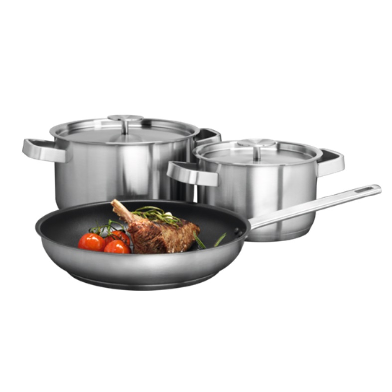 Set posod za kuhanje AEG A3SS vsebuje vse, kar potrebujete, da vsak dan skuhate kaj slastnega. Vključuje ponev (24 cm) in dve kozici (16 cm in 20 cm). Posode iz plemenitega jekla so primerne za kuhanje na indukcijskem, steklokeramičnem ali plinskem kuhališču.