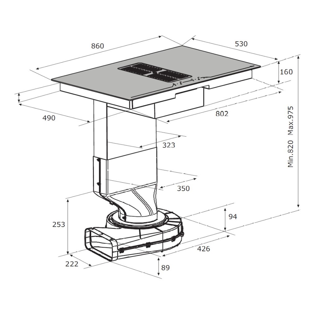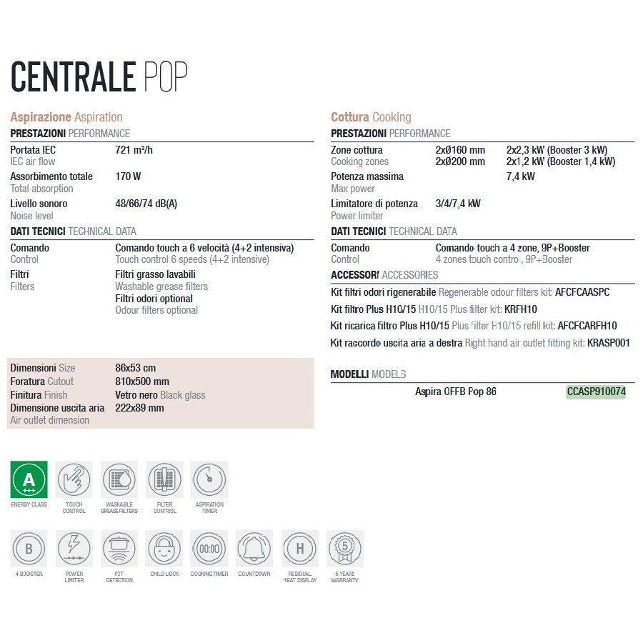 Indukcijska kuhalna plošča z integrirano napo Airforce Centrale POP 86 predstavlja revolucijo v kuhinji, saj dobite kuhalno ploščo in napo skupaj v enem aparatu.