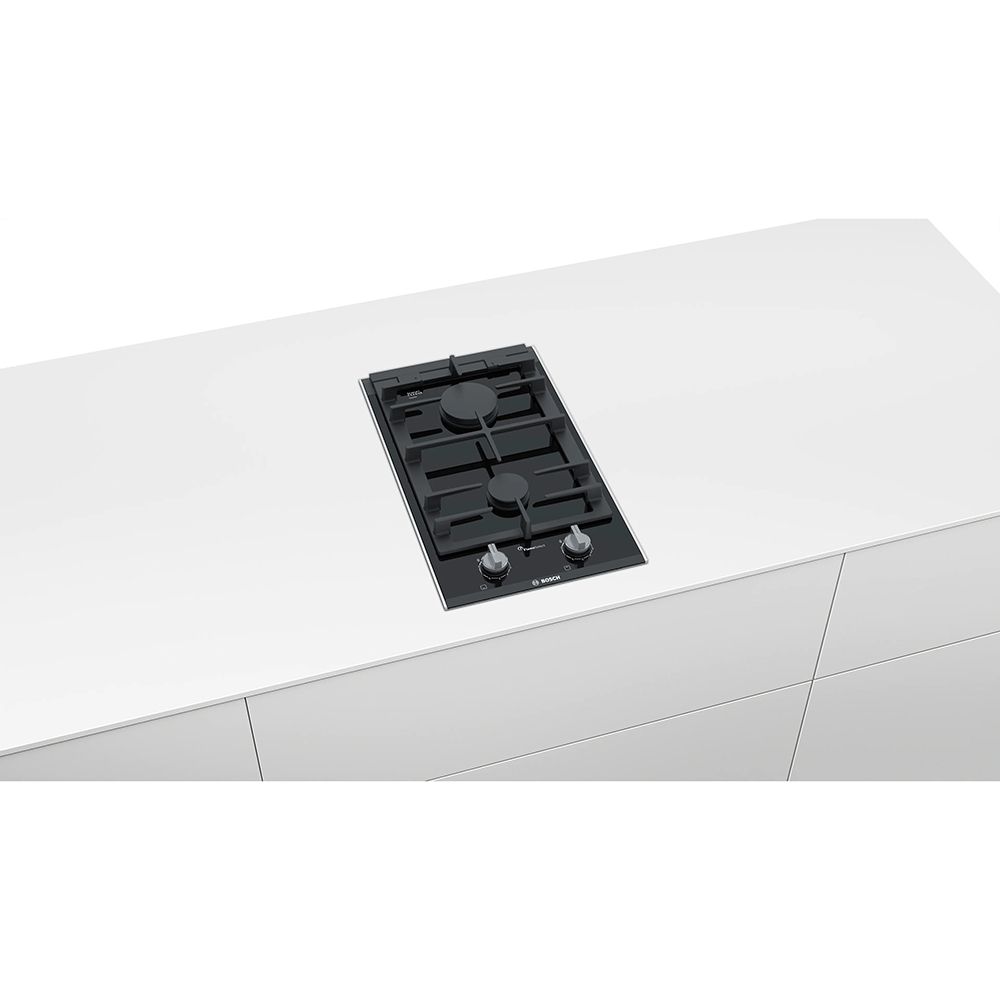 Domino plinska kuhalna plošča Bosch PRB3A6B70 serije 8. Idealno intenzivnost plamena je težko doseči, zato je kuhališče opremljeno s funkcijo FlameSelect, ki ponuja devet natančno določenih stopenj plamena. Kuhalna plošča je enostavna za čiščenje, saj so površine nosilcev za posodo kakovostne in jih je zato mogoče prati v pralnem stroju. Stojala za posode iz litega železa zagotavljajo največjo stabilnost, medtem ko ergonomski vrtljivi gumbi olajšajo kuhanje. Za ekološko uporabo lahko plinski štedilnik napajate s trajnostnim biometanom.