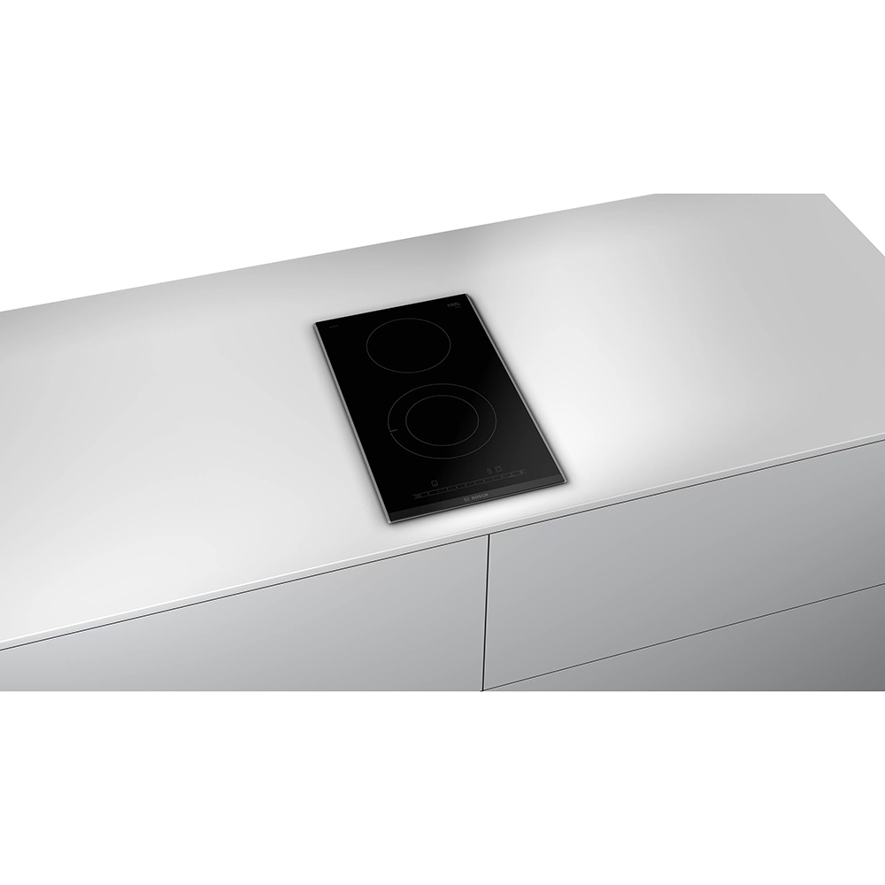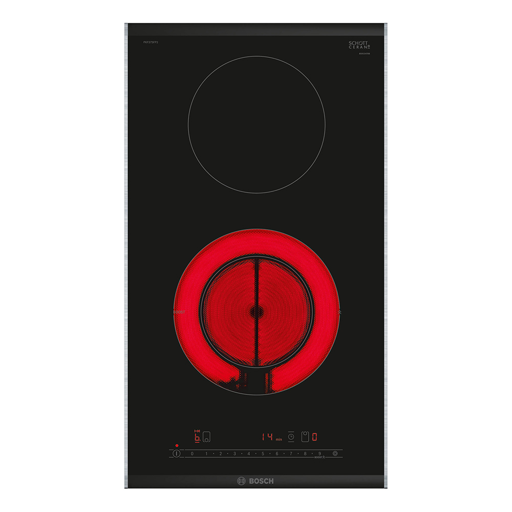 Domino steklokeramična kuhalna plošča Bosch PKF375FP2E serije 6. Je elegantnega in privlačnega videza z brušenim sprednjim robom in okrasnimi kovinskimi letvicami ob straneh. Možnost PowerBoost poveča zmogljivost in pospeši proces kuhanja. Zdaj lahko vodo za testenine zavrete 20 % hitreje, s čimer prihranite čas v kuhinji in povečate zadovoljstvo doma. Ko štedilnik izklopite, funkcija ReStart za omejeno časovno obdobje shrani predhodno določene nastavitve. Časovnik s funkcijo izklopa po določenem času izklopi dodeljeno kuhalno ploščo.
