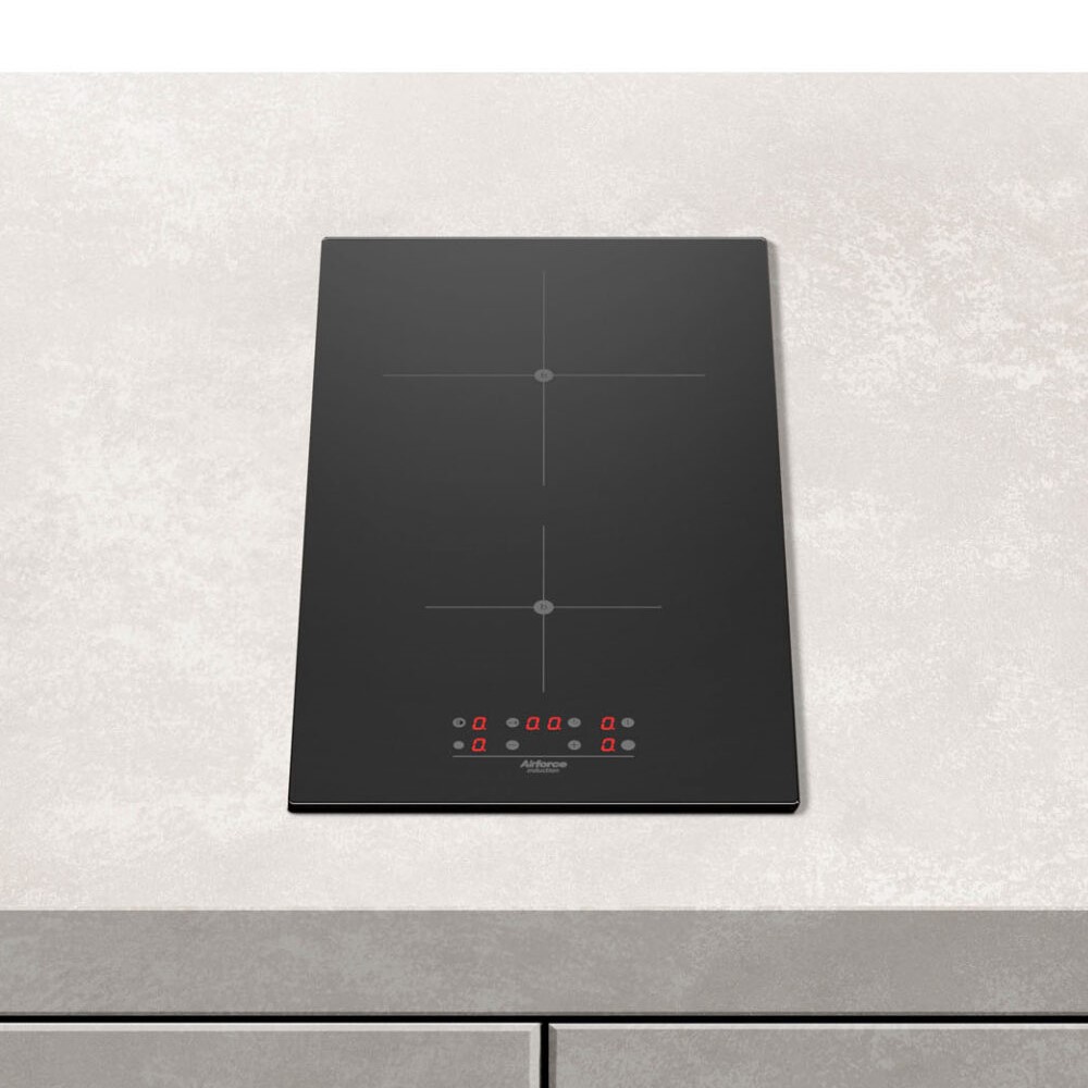 Indukcijska plošča Airforce Prima Domino 30 je novost pri Airforce-u in vam bo v pomoč pri vsakodnevnih opravilih v kuhinji. Primerna je za klasične ali manjše kuhinje, apartmaje, vikende … Izredna odzivnost, enostavno upravljanje, možnost nastavitve časa delovanja in močna booster kuhala cona vam bosta omogočila hitro in natančno pripravo hrane. V primeru, da vam katera jed prekipi, se bo kuhalna plošča samodejno izključila. Prav tako se bo po določenem času samodejno izključila, če bi jo slučajno pozabili izključiti po končani pripravi hrane.