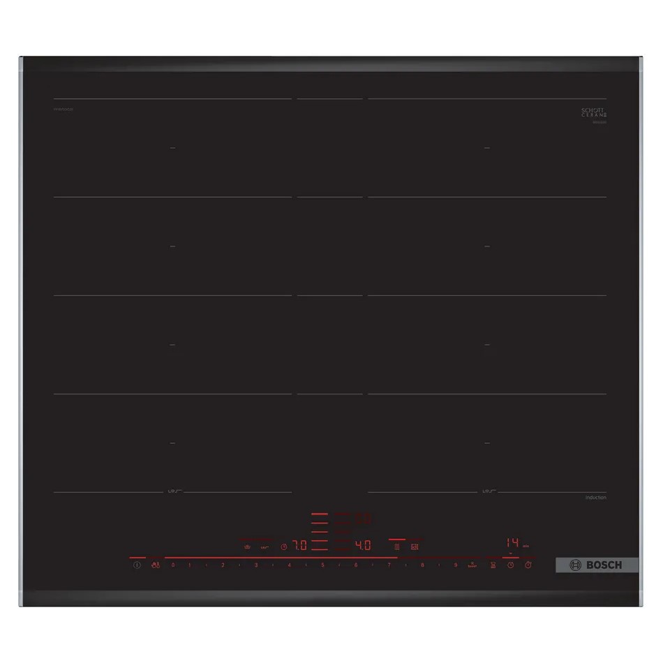 Indukcijska plošča Bosch PXY675DC1E se ponaša z napredno senzoriko. Ima PerfectFry senzor za popoln nadzor nad kuhanjem ter 5 stopenj moči. Plošča ima moderen ter minimalističen stil. Spodnji rob je brušen, prav tako pa ima stranske okrasne letvice. Z indukcijsko kuhalno ploščo boste sedaj kuhali hitreje, porabili manj energije, ploščo pa je prav tako enostavno očistiti.
