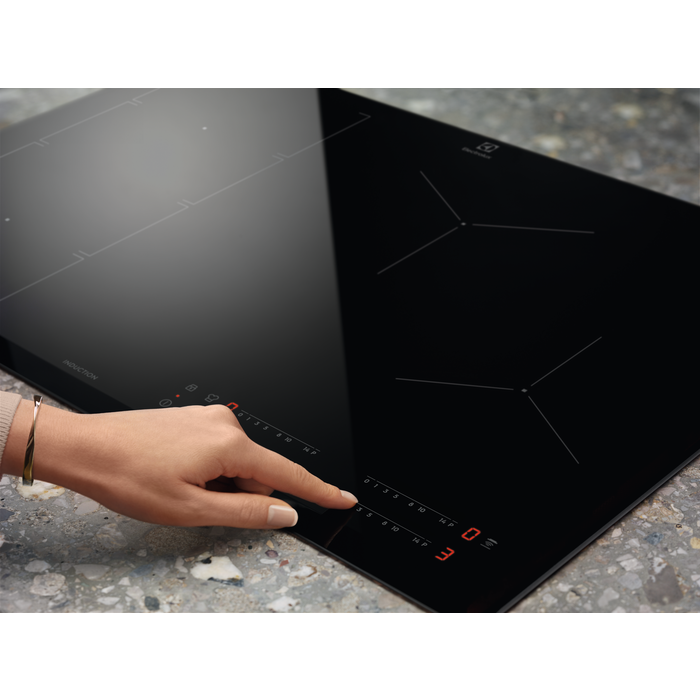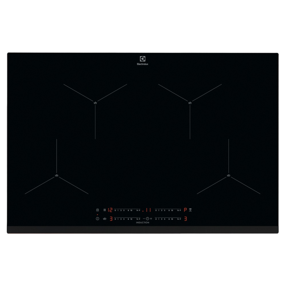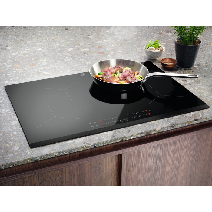 Indukcijska plošča Electrolux EIS824 širine 80 cm ima 4 kuhališča z upravljanjem na dotik in funkcijo hitrega segrevanja Power Boost. Kuhalno ploščo odlikuje funkcija SenseBoil®, ki samodejno prepozna vrenje vode in prilagodi nastavitve temperature, tako da oceni, kdaj se voda bliža vrelišču, in močno vrenje zmanjša na mirno. Za varnost kuhalne plošče skrbi varnostno zaklepanje tipk, ki prepreči nenameren vklop kuhališč in samodejni izklop ob daljši neuporabi. Plošča ima tudi funkcije Stop&Go za krajše prekinitve kuhanja, nastavljivi timer z izklopom in funkcijo Hob2Hood, s katero upravljate kuhinjsko napo preko plošče.