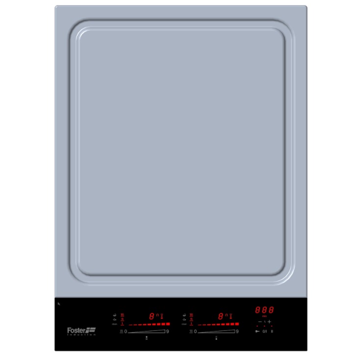 Indukcijski teppanyaki Foster S4000 Domino 7325 455 širine 38 cm je idealen za pripravo jedi na tradicionalen japonski način. Odlikuje ga enostavno upravljanje, ki omogoča, da nastavite temperaturo le z nežnim dotikom ali drsenjem po upravljalni plošči. Ima dve samostojni kuhalni površini, zato je možna uporaba zgolj polovice ali pa obe površini združite v eno veliko kuhalno površino, odvisno od potreb. Udobje uporabe povečujeta digitalni displej ter elektronska programska ura. Za varnost je poskrbljeno z varnostnim izklopom, indikatorjem vklopa in indikatorjem preostale toplote. Teppanyaki ima temperaturni razpon od 50 do 220 °C.