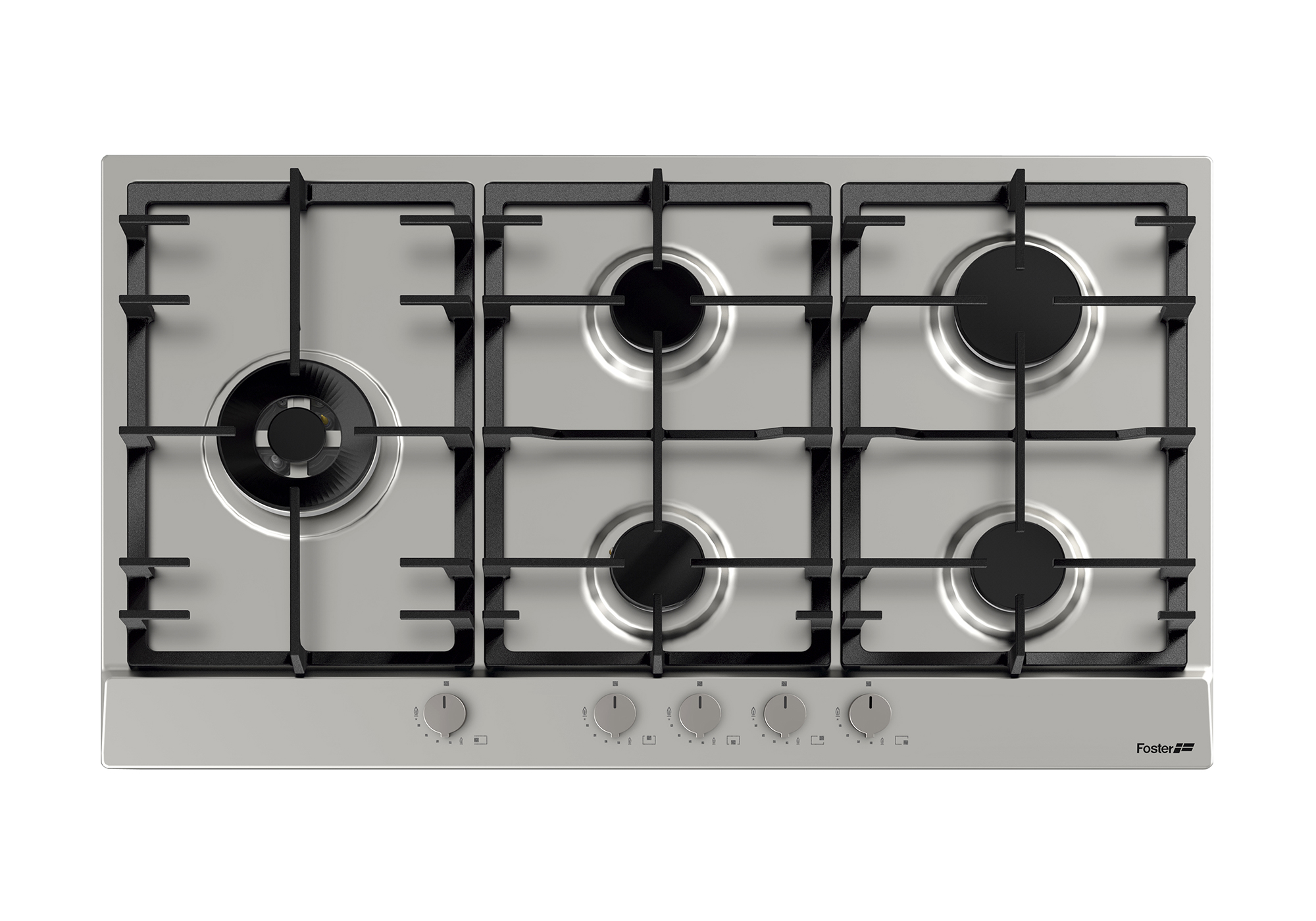 Plinska kuhalna plošča Foster Power 7016 032 je sinonim za funkcionalnost. Ima ergonomsko zasnovo z rahlo nagnjeno upravljalno ploščo in mehanske gumbe z električnim vžigom pod gumbi, kar pomeni, da lahko ploščo upravljate le z eno roko. Litoželezne rešetke zagotavljajo odličen prenos toplote, poleg tega pa so odporne na najvišje temperature, kar jim zagotavlja dolgo življenjsko dobo. Kuhalna plošča je opremljena z varnostnimi ventili. V primeru, da plamen ugasne se dovod plina takoj prekine.