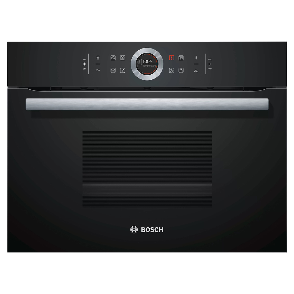Vgradna kompaktna parna pečica Bosch CDG634AB0 serije 8. Nežno kuhanje zelenjave s funkcijo pare jo ohranja čvrsto, piščanec in ribe pa ostanejo mehki in vlažni. Pri krmarjenju po možnostih programov na zaslonu na dotik vam jasni in živi simboli ter informativna sporočila pomagajo in vas vodijo skozi vsak korak. Mehanizma za blaženja SoftOpen in SoftClose preprečujeta trdo zapiranje vrat. 20 prednastavljenih avtomatskih programov zagotavlja popoln uspeh vsakega obroka.