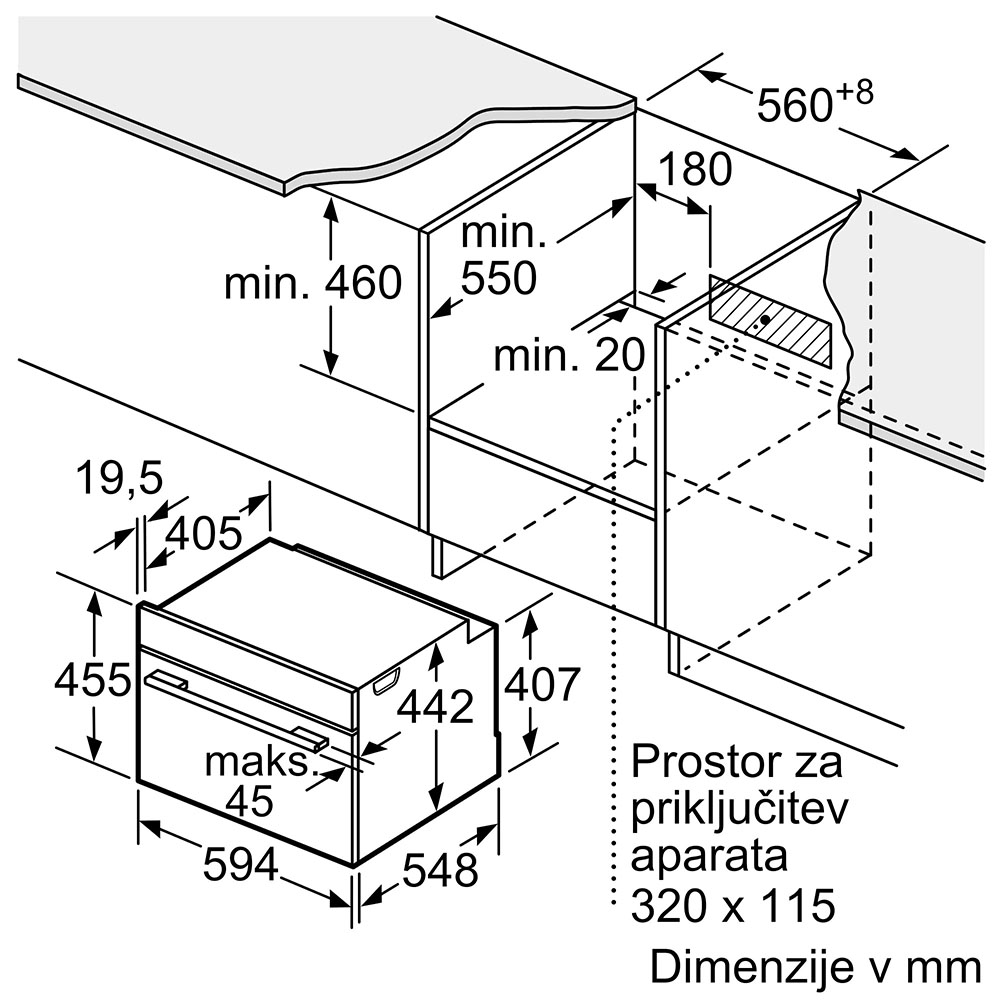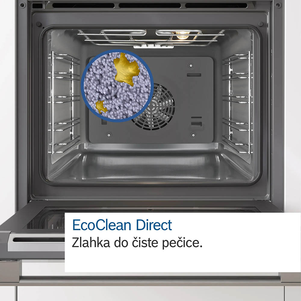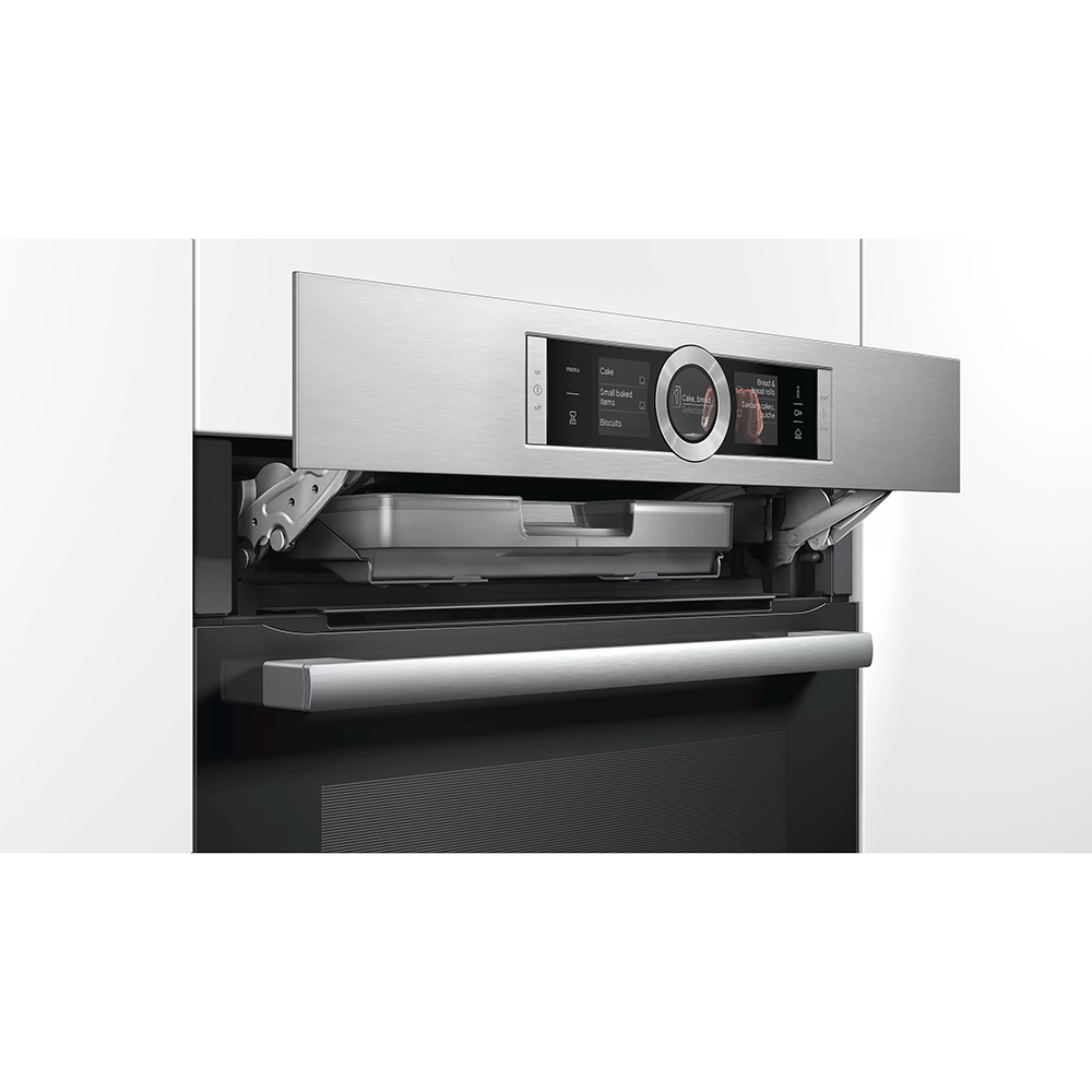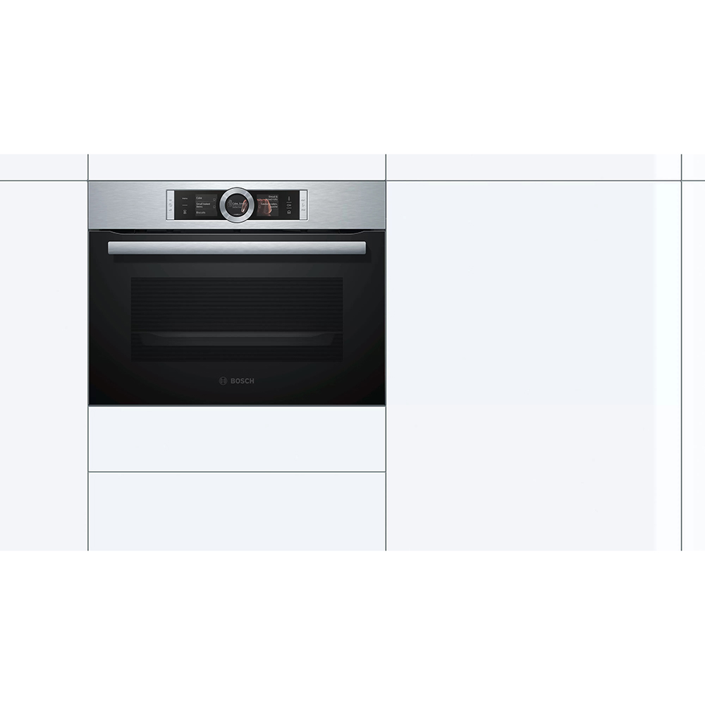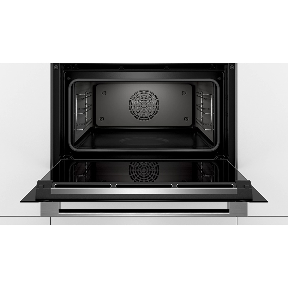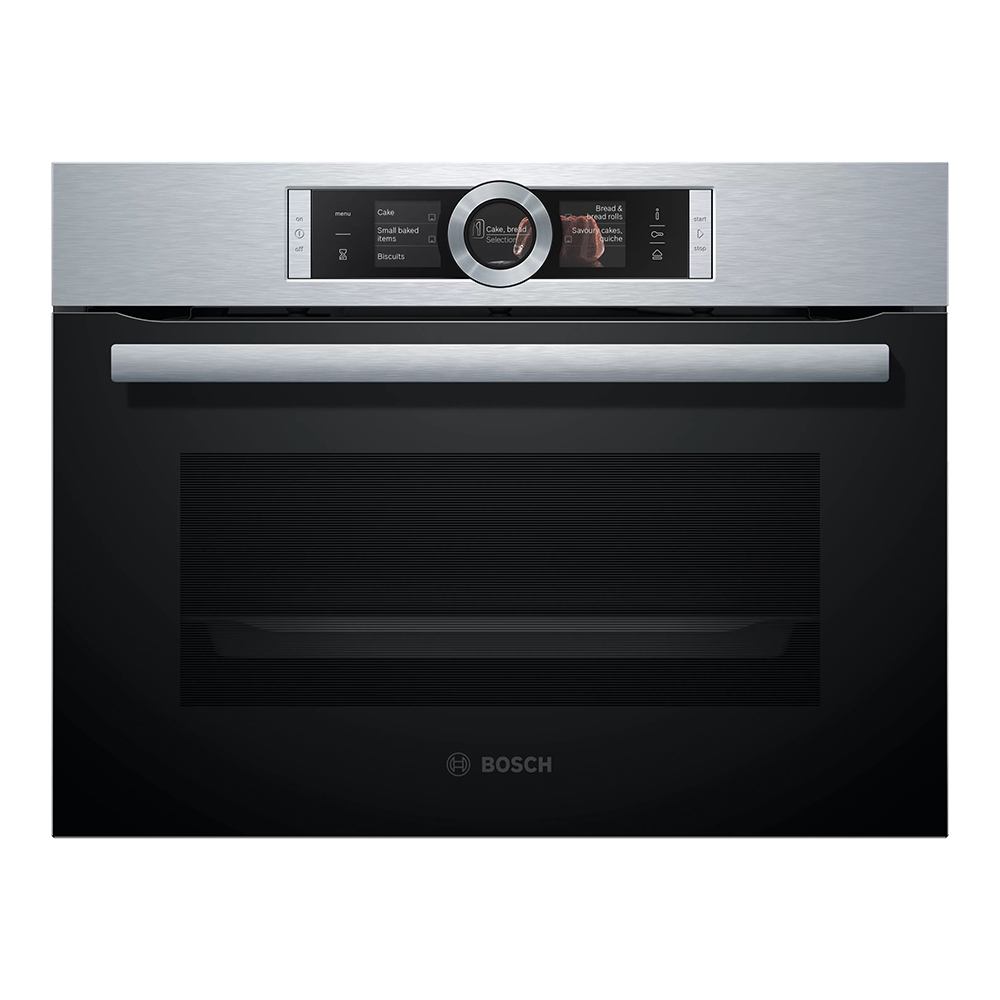 Vgradna kompaktna pečica s funkcijo pare Bosch CSG656BS2 serije 8. Kuhanje na vroči pari ne ohrani le vitaminov in mineralov, ampak tudi popoln naraven okus hrane. Funkcija pare zagotavlja okusno kuhinjo od skorjice do sredice, tako da dovaja ravno pravo količino pare, ko je potrebna. Toplota se enakomerno razprši s funkcijo 4D vročega zraka. Pečica se enostavno očisti z EcoClean Direct.