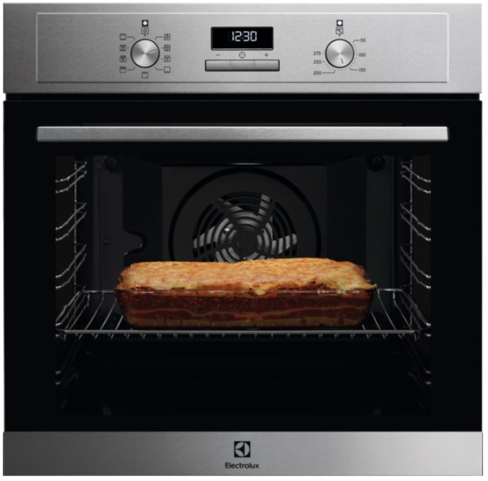 Vgradna pečica Electrolux EOF3H40X se ponaša s prostornino 72 l in energijskim razredom A. Za upravljanje so na voljo mehanska stikala in izvlečni gumbi. Pečica ima 9 različnih funkcij in timer s 5 nastavitvami. Notranjost je iz lahko čistilnega emajla, katero je mogoče očistiti s pomočjo vodnega sistema čiščenja pečice AquaClean.