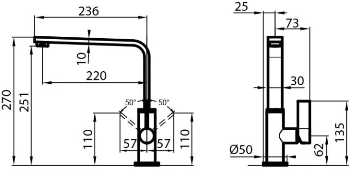 Kuhinjska armatura Foster NYC 8486 000 ima neobičajen ploščat izliv in kot obračanja 360°. Posebna ojačitvena plošča armaturi zagotavlja veliko stabilnost na vsakem pomivalnem koritu.