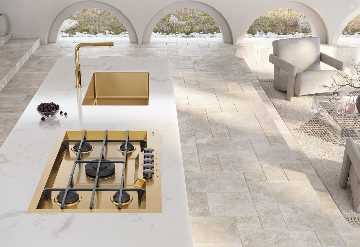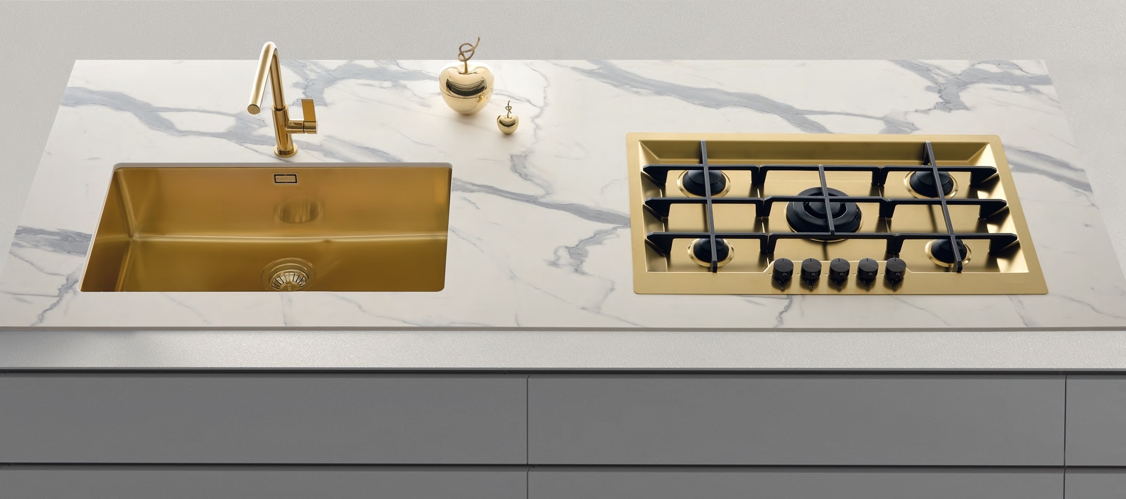 Enoročna kuhinjska armatura Foster OMEGA 8497 700 je ekstravagantnega izgleda, ki pritegne vsak pogled. Klasična oblika armature v zlati barvi izpade elegantno v vsaki kuhinji. Prav tako se armatura prilega širokemu spektru Foster pomivalnih korit.