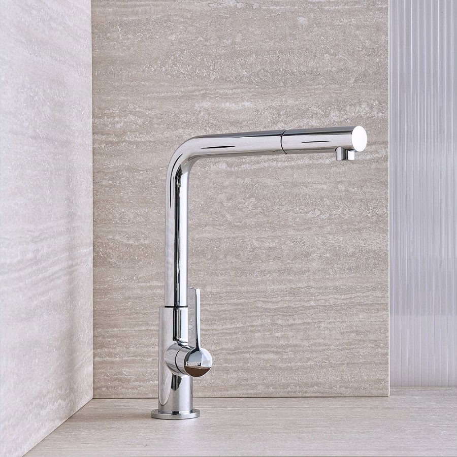 Kuhinjska armatura Foster OMEGA PLUS 8497 020 bo s svojo vitko zasnovo vnesla v vašo kuhinjo nekaj elegance. Ima izvlečno ročko do 50 cm in je obračljiva do 360°. Kartuša s keramičnimi diski ji zagotavlja dolgo življenjsko dobo, ojačitvena plošča pa dodatno stabilnost na kateremkoli pomivalnem koritu.