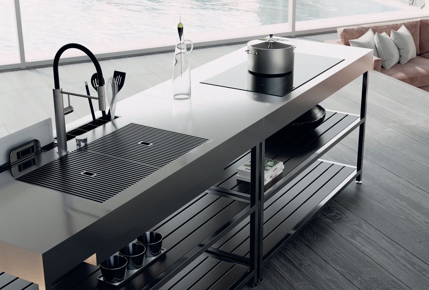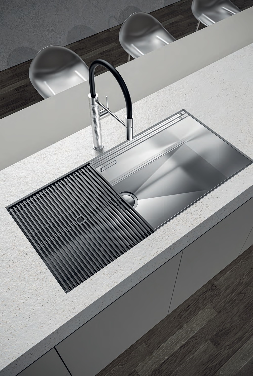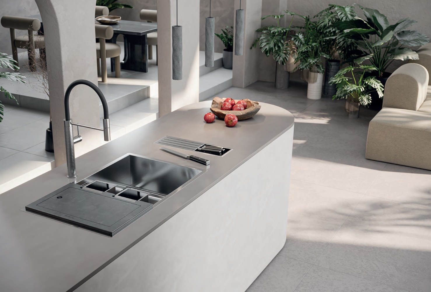 Kuhinjska armatura Foster SKIN 8424 100 ima izjemen dizajn, ki bo zadovoljil še tako zahtevnega kupca. Je satenastega izgleda, narejena iz visokokakovostnega plemenitega jekla AISI 316 in s kotom vrtenja 360°. Kartuša armature je iz keramičnih diskov, kar ji zagotavlja dolgo življenjsko dobo.