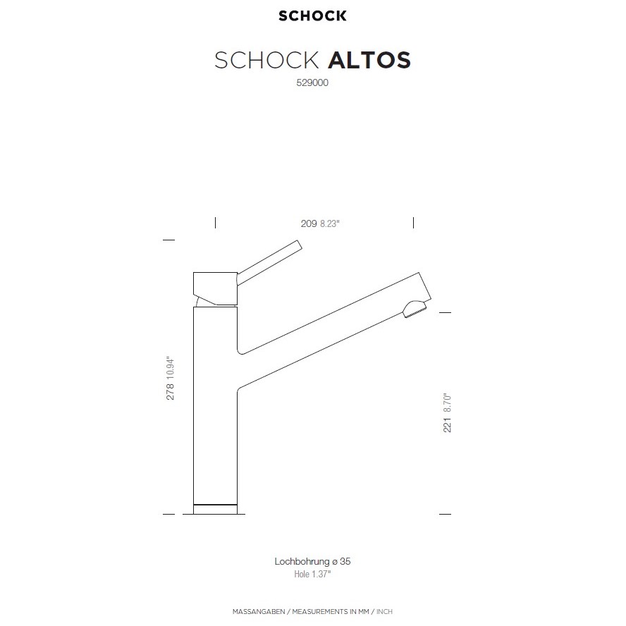 Kuhinjska armatura SCHOCK Altos 529000 ima elegantno klasično obliko, zato je tudi izjemno priljubljena v modernih kuhinjah. Lepo se ji poda pomivalno korito SCHOCK Tia ali Formhaus. Na voljo je v tej črni izvedbi Puro, v ponudbi pa je na voljo še v izvedbi EDM iz plemenitega jekla.