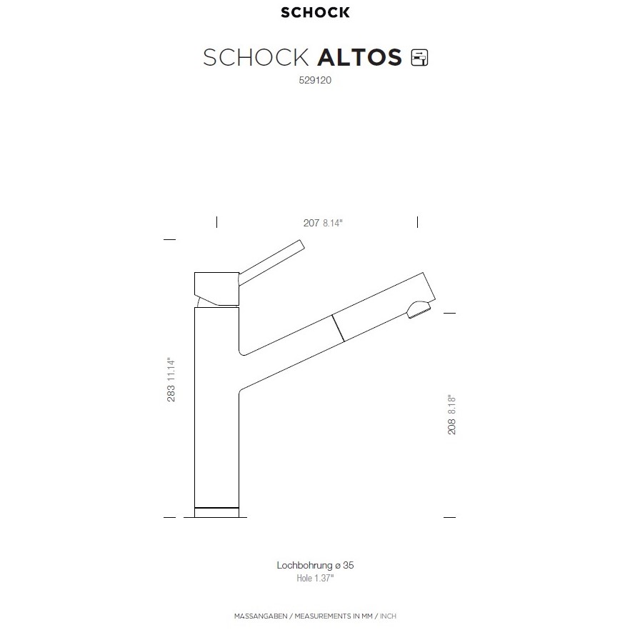 Kuhinjska armatura SCHOCK Altos 529120 ima elegantno klasično obliko, zato je tudi izjemno priljubljena v modernih kuhinjah. Lepo se ji poda pomivalno korito SCHOCK Tia ali Formhaus. Na voljo je v tej črni barvi Puro, v ponudbi pa je na voljo še v EDM izvedbi iz plemenitega jekla.