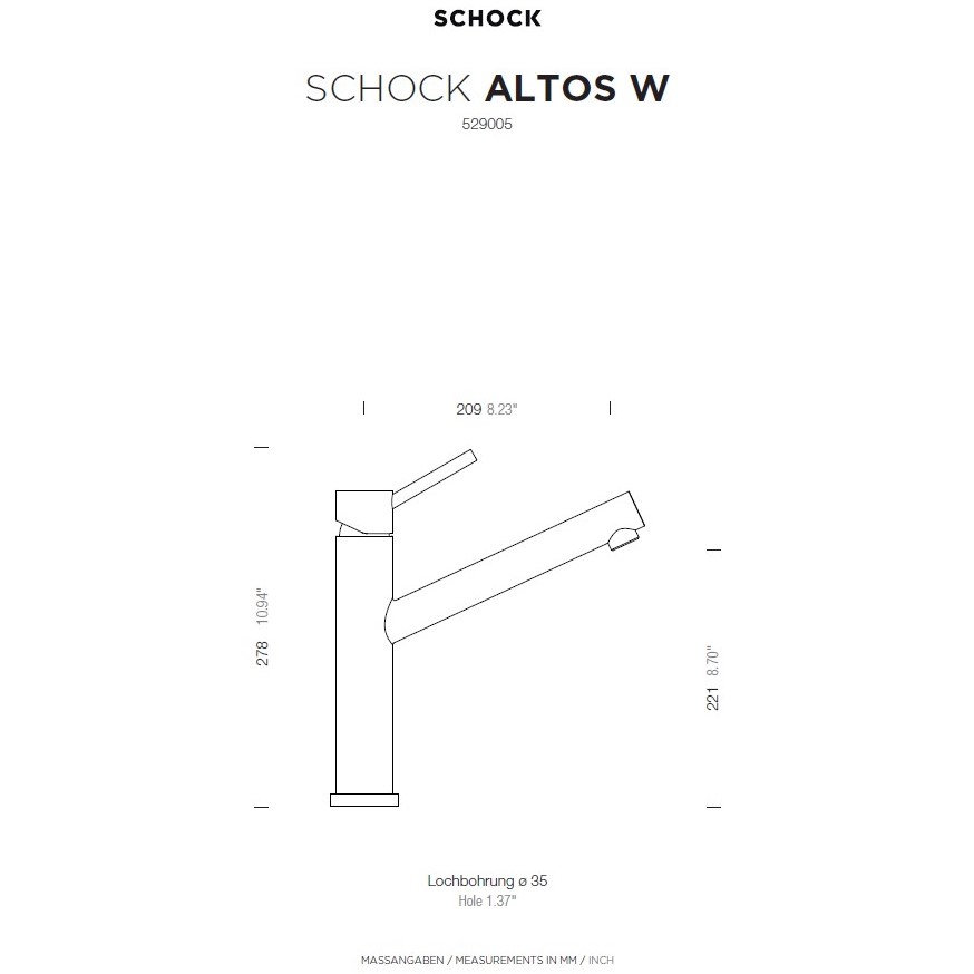 Ta armatura je primerna za namestitev pod kuhinjsko okno, na voljo je pa tudi v izvedbi z izvlečno ročko (Altos 529125). Ta model armature je dobavljiv tudi v klasični fiksni izvedbi (Altos 529000 in 529120), kakor tudi v nižji izvedbi Altos S (530000 in 530120) v barvi EDM ali Puro.