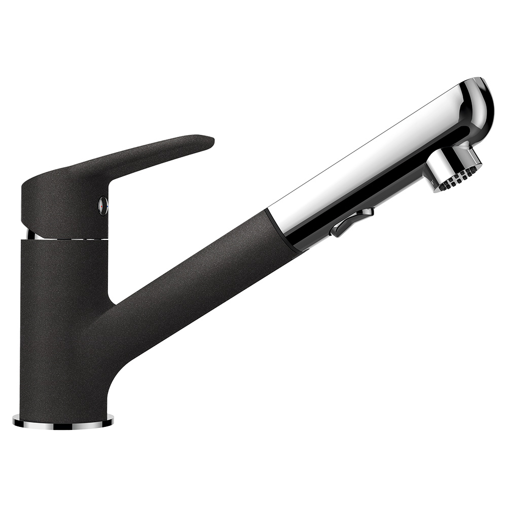 Kuhinjska armatura SCHOCK Daja 522120 je klasična izvlečna armatura s tušem, ki je zaradi svojega videza izjemno priljubljena v vseh tipih kuhinj. Lepo se ji poda pomivalno korito SCHOCK Manhattan. Na voljo je v tej črni barvi Onyx, v ponudbi pa je na voljo še v štirih drugih barvah (Daja 522120). V vseh petih barvah se lahko dobi tudi v izvedbi brez izvlečne ročke (Daja 522000).