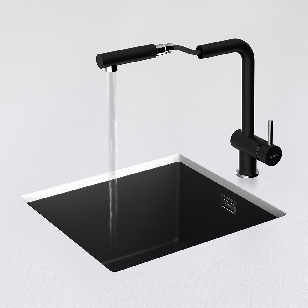 Kuhinjska armatura SCHOCK Epos 540120 je izvlečna armatura, ki je zaradi svojega elegantnega videza izjemno priljubljena v modernih kuhinjah. Lepo se ji poda pomivalno korito SCHOCK Greenwich N-100.