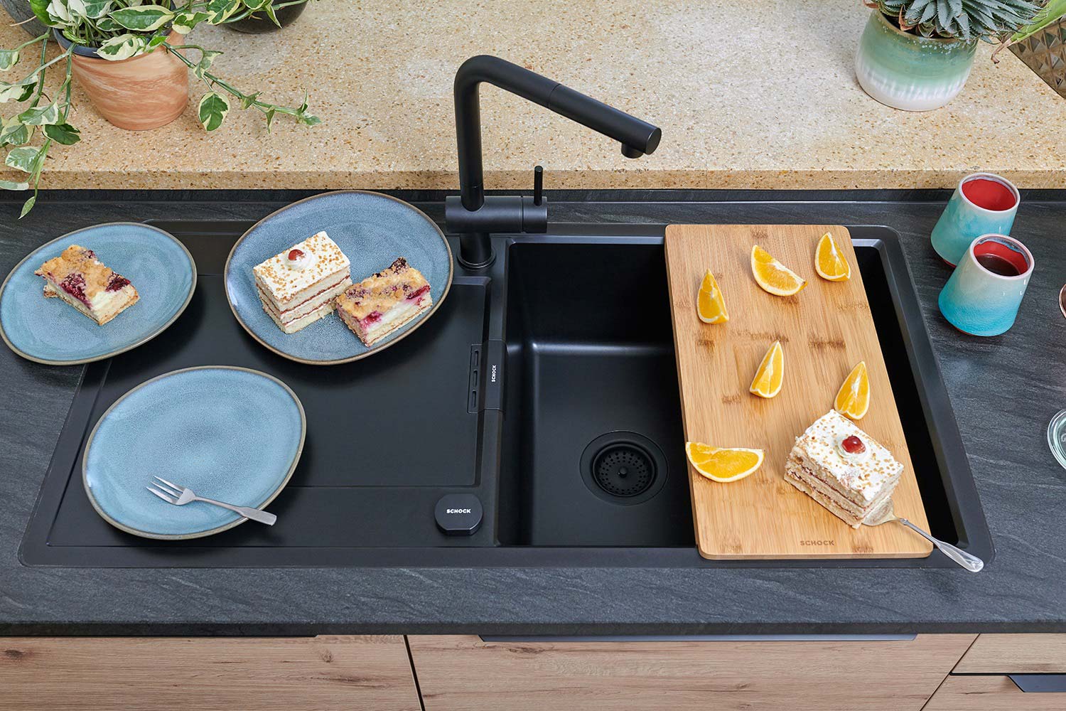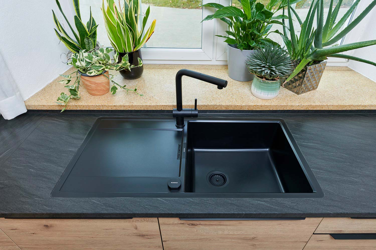 Kuhinjska armatura SCHOCK Epos 540127 je izvlečna armatura, ki je zaradi svojega privlačnega videza izjemno priljubljena v modernih kuhinjah. Lepo se ji poda pomivalno korito SCHOCK Greenwich N-100.