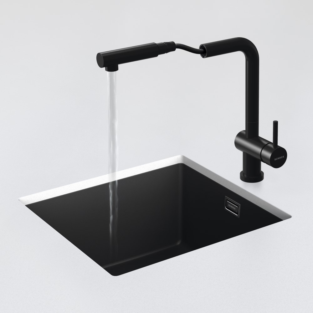 Kuhinjska armatura SCHOCK Epos W 540125 z izvlečno ročko je zaradi svojega elegantnega videza izjemno priljubljena v modernih kuhinjah. Črka W v imenu pomeni, da gre za izvedbo, ki je primerna za montažo pod okno, saj se lahko izjemno elegantno izvleče in vstavi nazaj na svoje mesto. Lepo se ji poda tudi pomivalno korito SCHOCK Greenwich N-100.