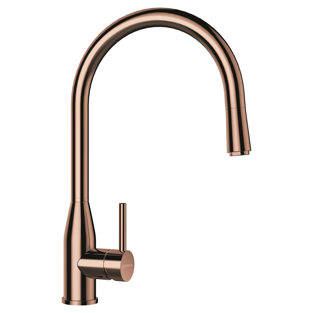 Kuhinjska armatura SCHOCK Kavus 559120 v bakreni barvi Copper ima izjemno prefinjen in eleganten dizajn, zato se zraven nje zelo lepo poda pomivalno korito SCHOCK Formhaus. Izdelana je iz plemenitega jekla, nato pa še galvansko obdelana, kar omogoča, da kuhinjska armatura dobi posebno barvo, hkrati pa postane še bolj korozijsko zaščitena ter obstojna.