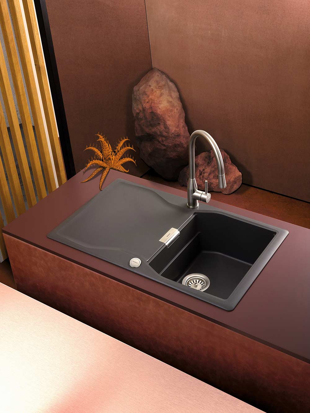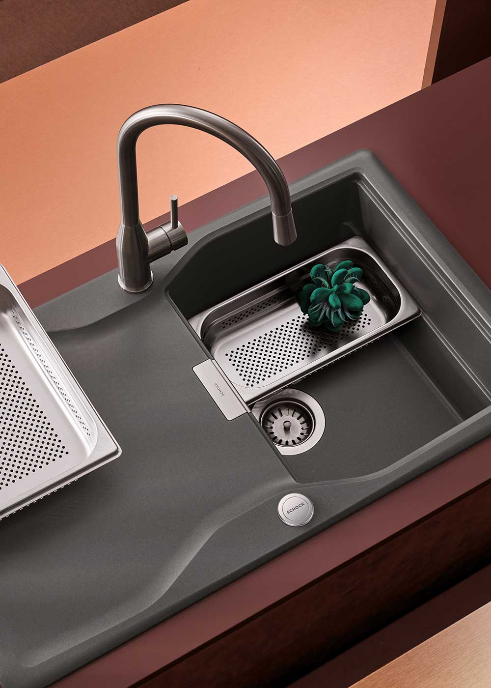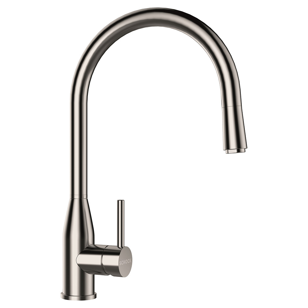 Kuhinjska armatura SCHOCK Kavus 559120 v barvi plemenitega jekla (EDM) ima izjemno prefinjen in eleganten dizajn, zato se zraven nje zelo lepo poda pomivalno korito SCHOCK Formhaus. Izdelana je iz plemenitega jekla in zato je kuhinjska armatura korozijsko zaščitena ter obstojna.
