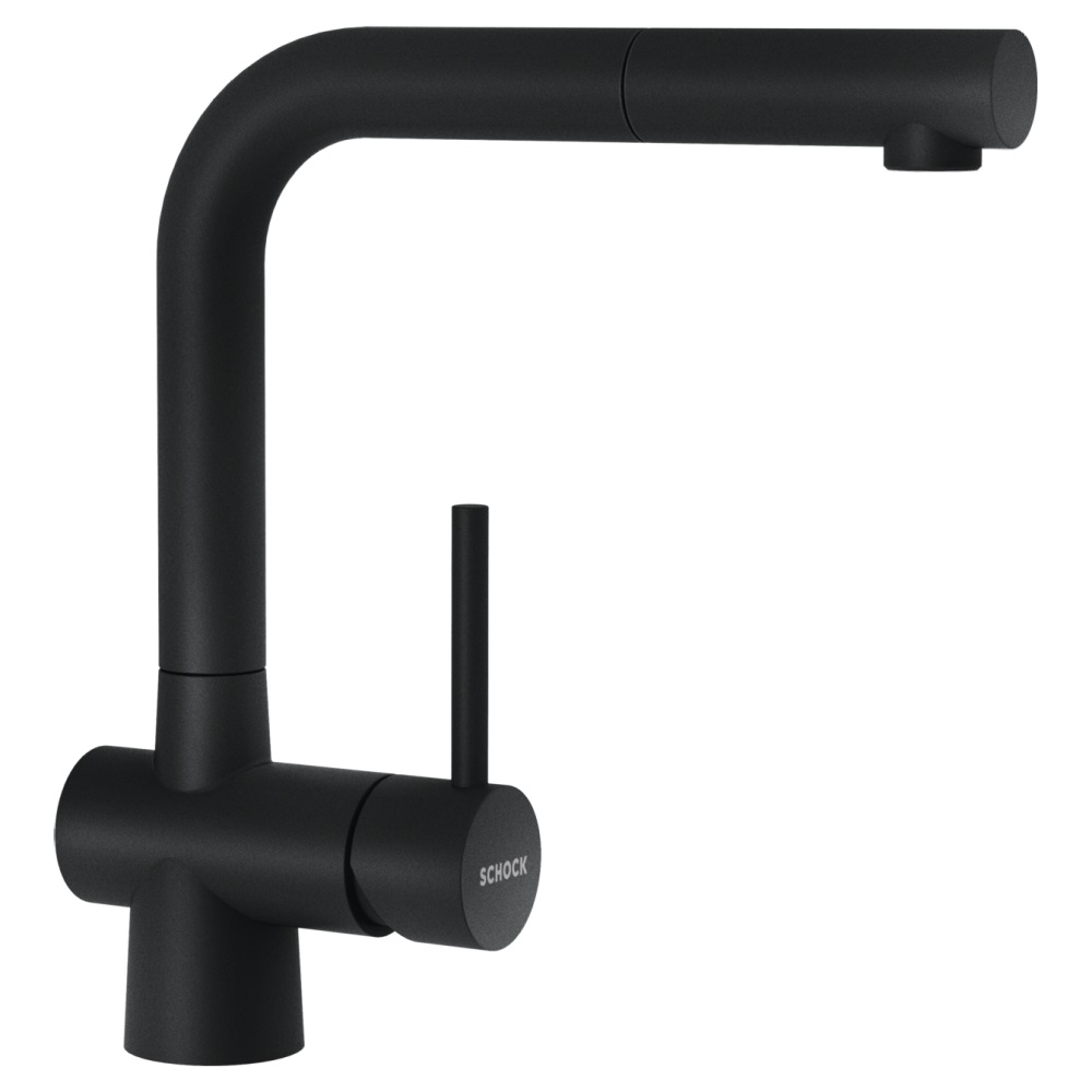 Kuhinjska armatura SCHOCK Laios 517120 je zaradi svojega privlačnega videza izjemno priljubljena v modernih kuhinjah. Lepo se ji poda tudi pomivalno korito SCHOCK Tia D-100. Na voljo je v tej črni barvi Magma, v ponudbi pa je tudi še v devetih drugih barvah. Lahko se dobi še v treh drugih izvedbah: brez izvlečne ročke (Laios 517000), za namestitev pod okno brez izvlečne ročke (Laios 517005) ali za namestitev pod okno z izvlečno ročko (Laios 517125).