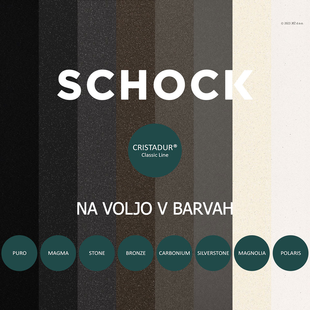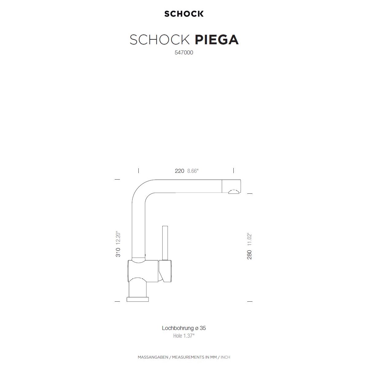 Kuhinjska armatura SCHOCK Piega 547000 s svojim dizajnom izraža izjemno eleganco. Armaturi z visokim izlivom se čudovito poda pomivalno korito SCHOCK Greenwich N-100. Na voljo je v tej temni barvi Stone, v ponudbi pa je tudi še v sedmih drugih barvah. Lahko se dobi tudi v izvedbi z izvlečno ročko (Piega 547120 in 547121).