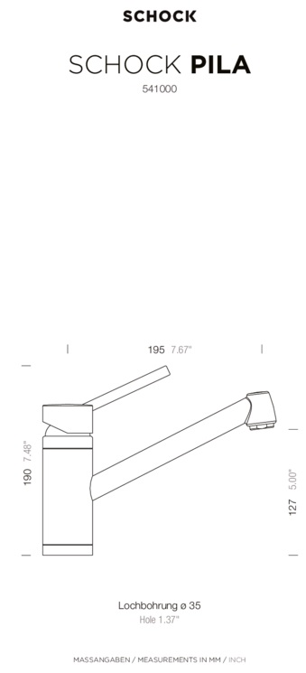 Kuhinjska armatura se lahko namesti na pomivalno korito ali direktno na pult debeline do 4 cm. kuhinjska armatura je na voljo v nevtralni krom izvedbi. Moderna oblika armature se prilegaja širokemu spektru SCHOCK pomivalnih korit drznih oblik.