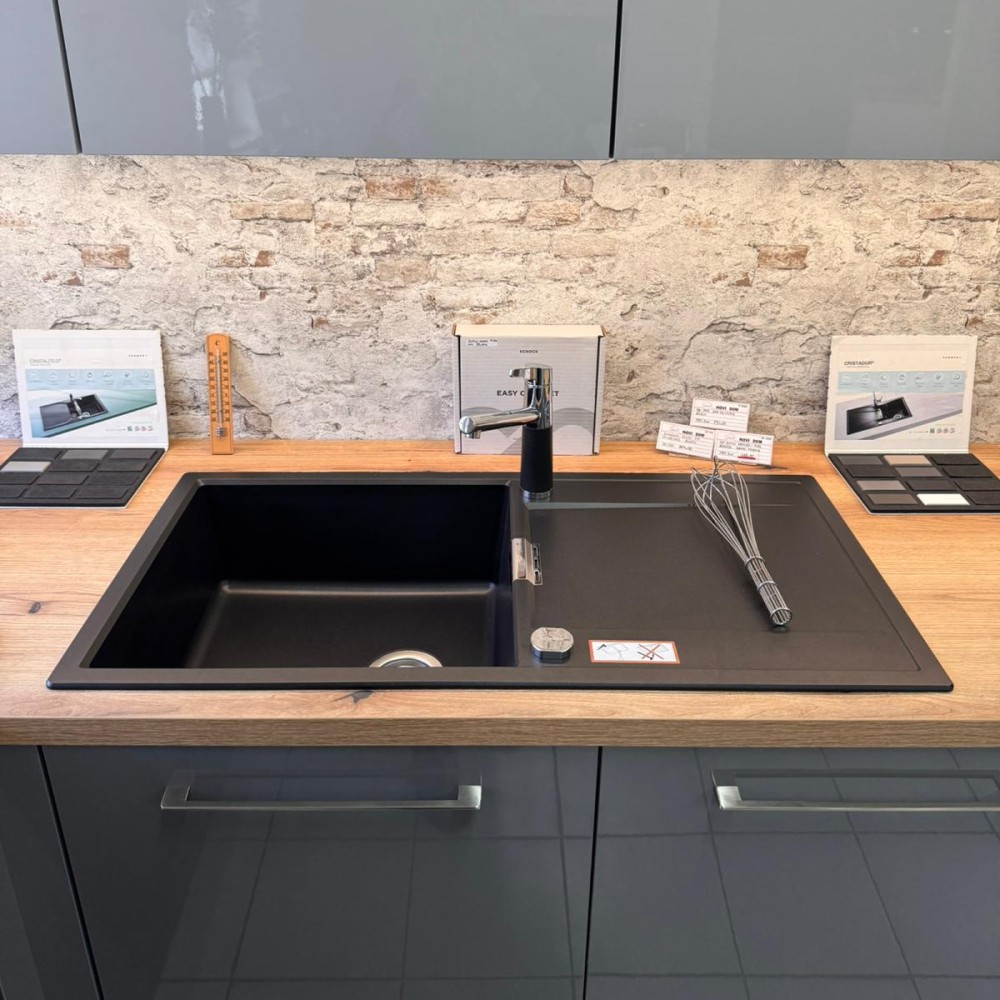 Kuhinjska armatura SCHOCK SC-510 je klasična brezčasna armatura, ki je delno kromirana, delno pa jo sestavlja naravni kamen. V tej črni barvi Puro se ji zelo lepo poda pomivalno korito SCHOCK Greenwich v isti barvi.