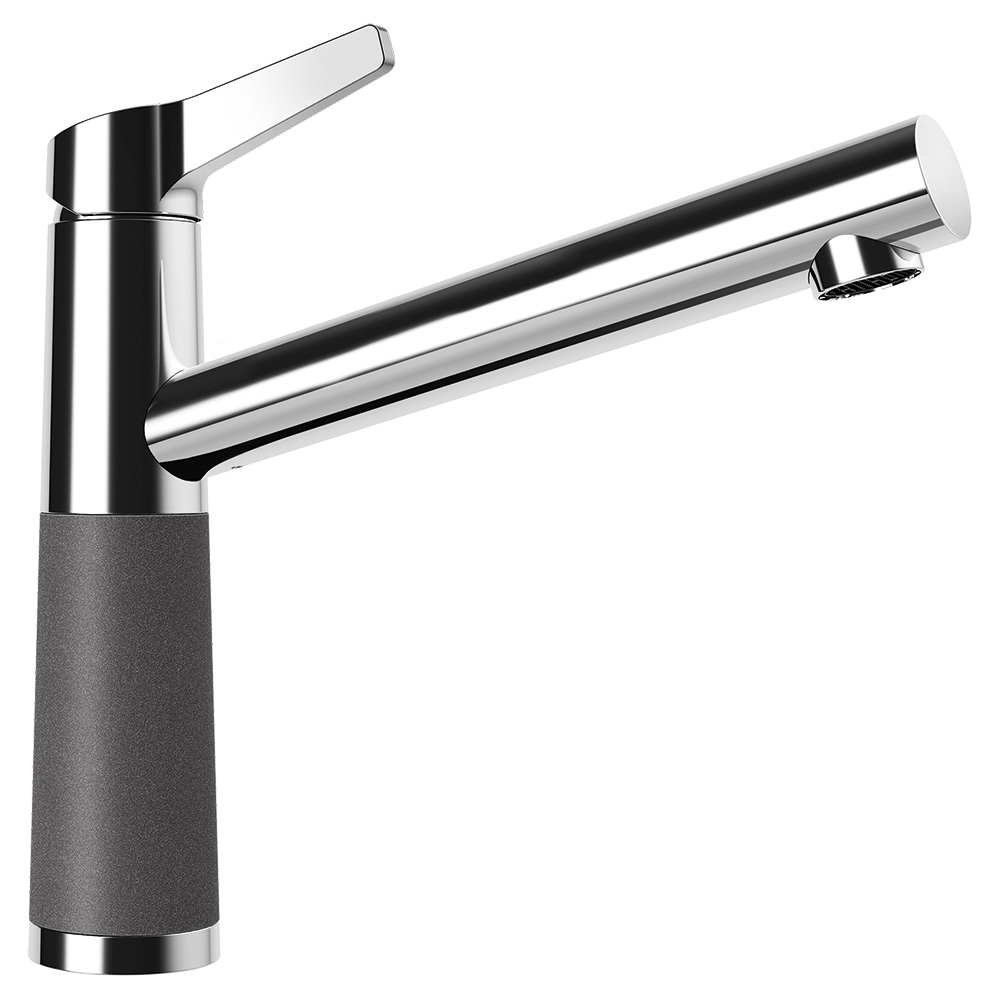 Kuhinjska armatura SCHOCK SC-510 je klasična brezčasna armatura, ki je delno kromirana, delno pa jo sestavlja naravni kamen. V tej temni barvi Stone se ji zelo lepo poda pomivalno korito SCHOCK Greenwich v isti barvi.