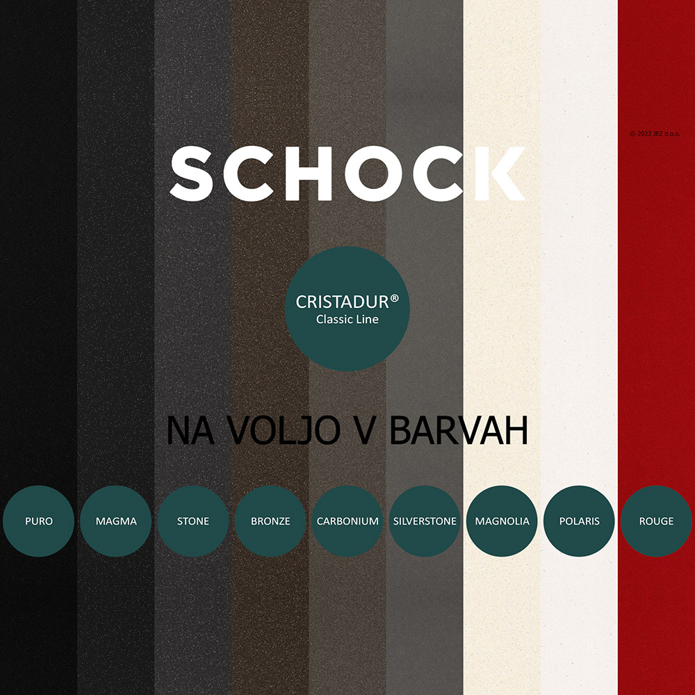 Kuhinjska armatura SCHOCK SC-510 je klasična brezčasna armatura, ki je delno kromirana, delno pa jo sestavlja naravni kamen. V tej črni barvi Magma se ji zelo lepo poda pomivalno korito SCHOCK Greenwich v isti barvi.