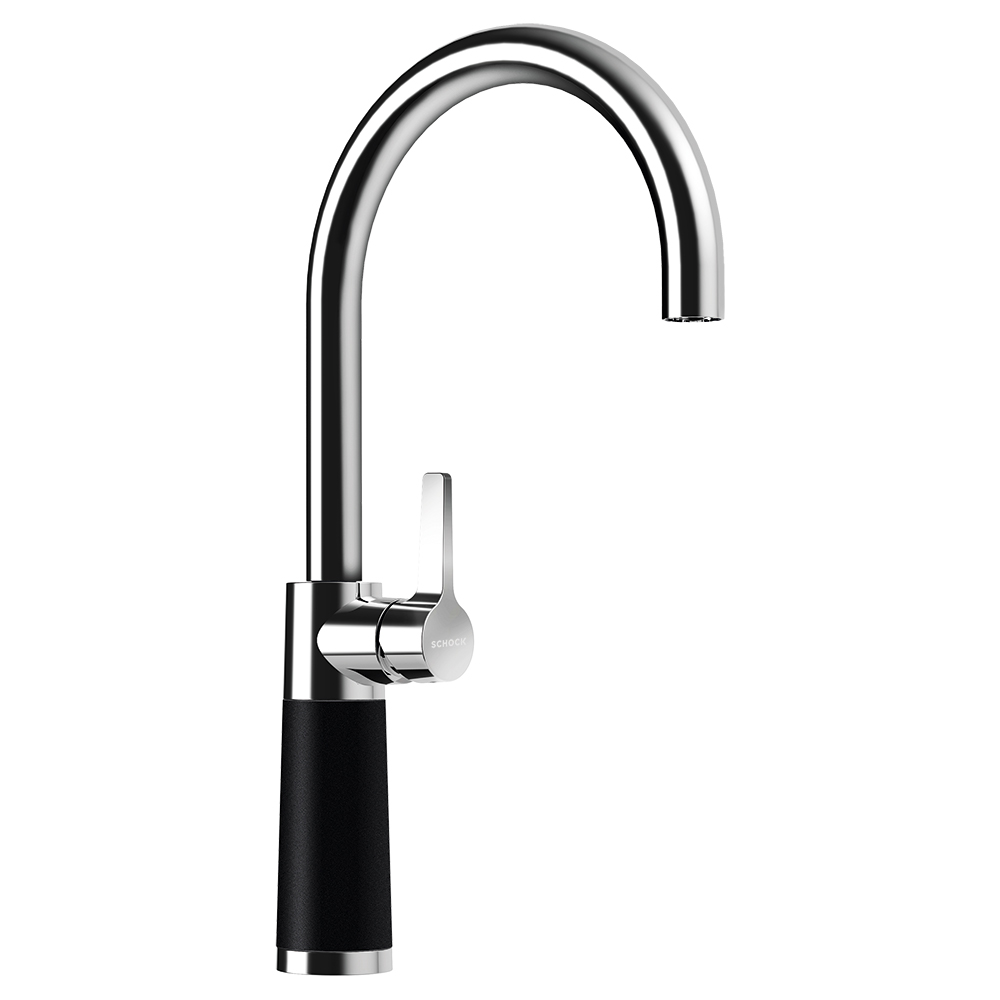 Kuhinjska armatura SCHOCK SC-520 555000 je elegantna armatura z visokim izlivom. En del armature je kromiran, drug del pa je narejen iz naravnega kamna Cristadur®. Kamniti del armature je popolnoma enak kot za pomivalna korita SCHOCK, zato lahko s to armaturo dosežete popolno ujemanje z vašim koritom SCHOCK.