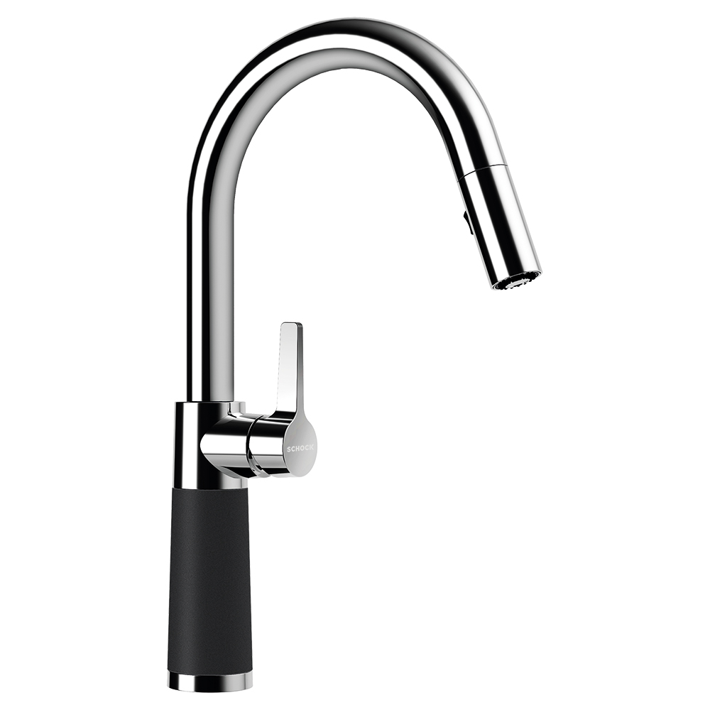 Kuhinjska armatura SCHOCK SC-520 555000 je elegantna armatura z visokim izlivom, izvlečno ročko ter tušem. En del armature je kromiran, drug del pa je narejen iz naravnega kamna Cristadur®. Kamniti del armature je popolnoma enak kot za pomivalna korita SCHOCK, zato lahko s to armaturo dosežete popolno ujemanje z vašim koritom SCHOCK.