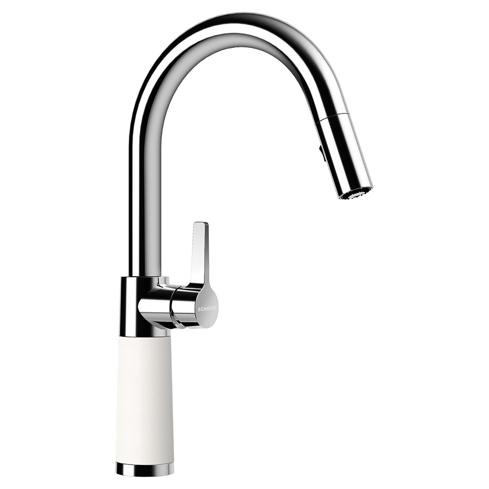 Armatura se v tej beli barvi Polaris lepo poda zraven pomivalnega korita SCHOCK Waterfall, na voljo je pa še v 17-ih drugih barvah. Prav tako je na voljo v izvedbi brez izvlečne ročke in tuša (SC-520 555000).