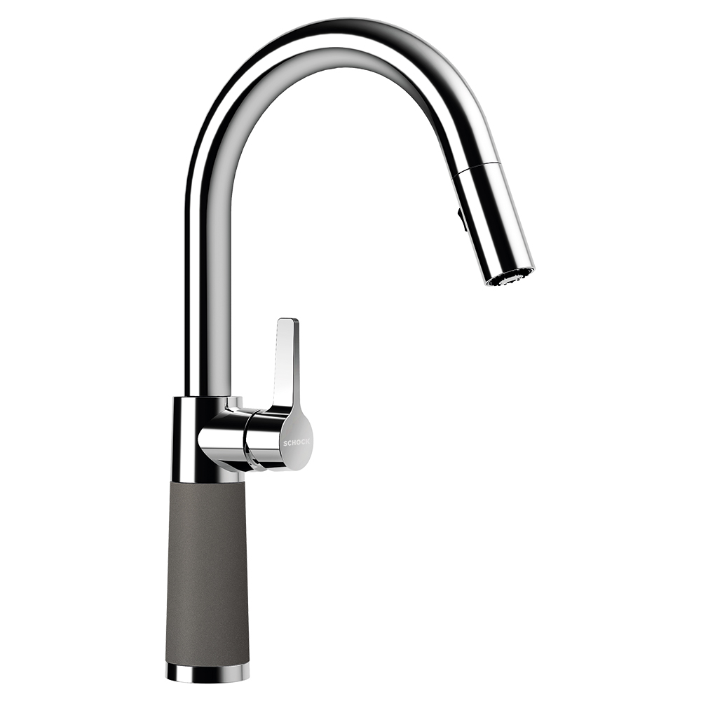 Armatura se v tej sivi barvi Silverstone lepo poda zraven pomivalnega korita SCHOCK Waterfall, na voljo je pa še v 17-ih drugih barvah. Prav tako je na voljo v izvedbi brez izvlečne ročke in tuša (SC-520 555000).