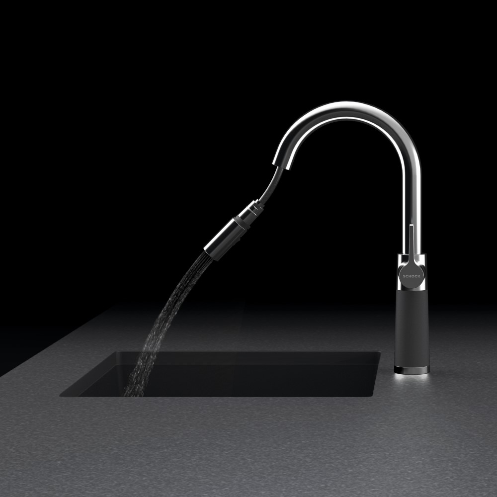 Armatura se v tej temni barvi Stone lepo poda zraven pomivalnega korita SCHOCK Waterfall, na voljo je pa še v 17-ih drugih barvah. Prav tako je na voljo v izvedbi brez izvlečne ročke in tuša (SC-520 555000).