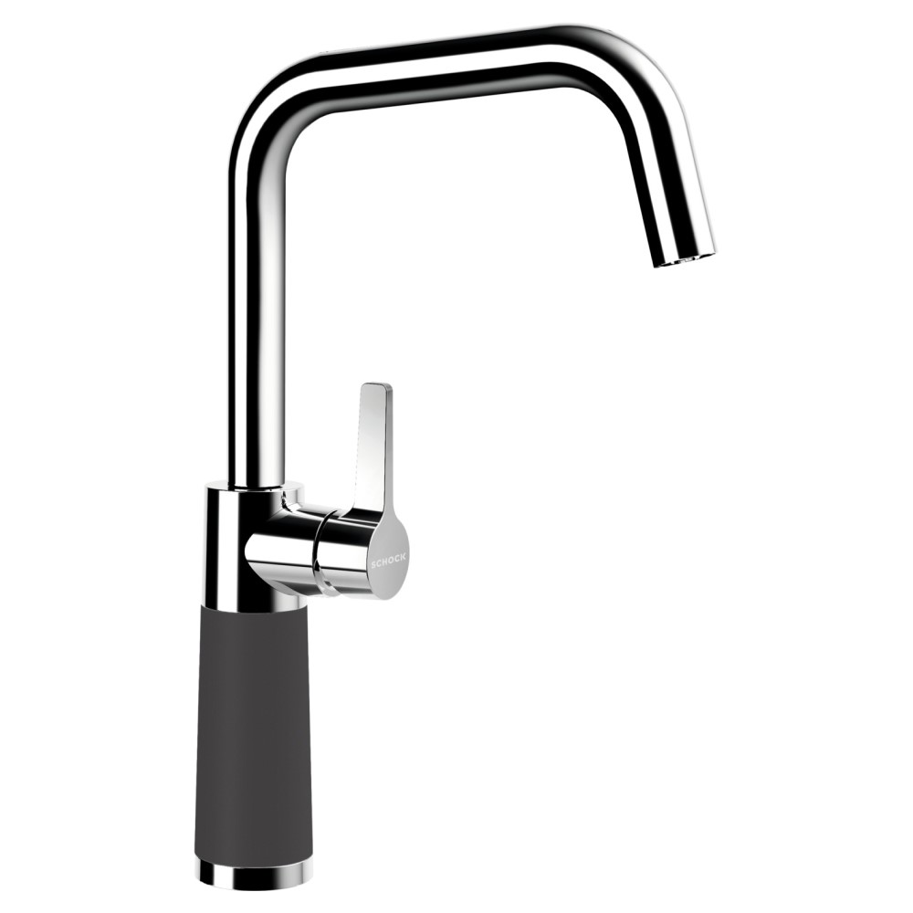 Kuhinjska armatura SCHOCK SC-530 556000 je elegantna armatura z visokim izlivom. En del armature je kromiran, drugi del pa je narejen iz naravnega kamna Cristadur®. Kamniti del armature je popolnoma enak kot pri pomivalnih koritih SCHOCK, zato lahko s to armaturo dosežete popolno ujemanje z vašim kamnitim koritom SCHOCK.