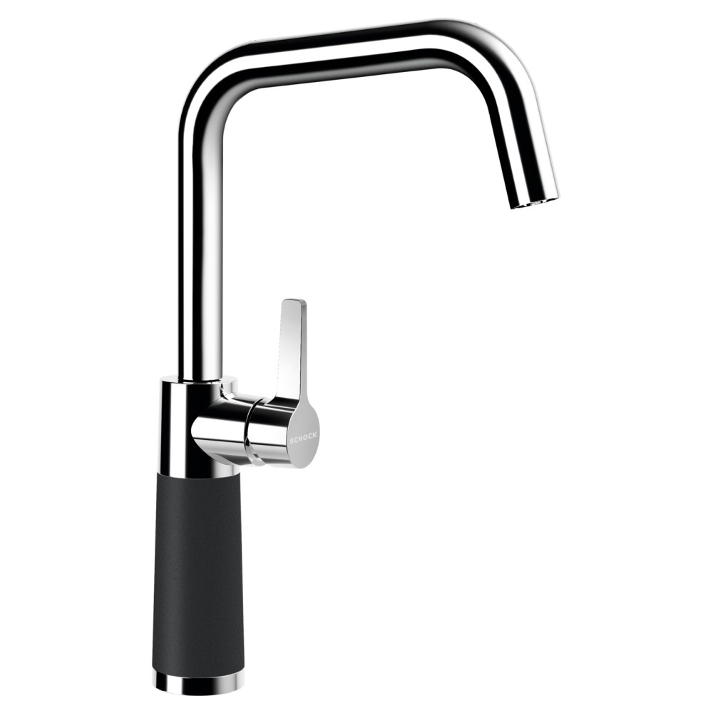 Kuhinjska armatura SCHOCK SC-530 556000 je elegantna armatura z visokim izlivom. En del armature je kromiran, drugi del pa je narejen iz naravnega kamna Cristadur®. Kamniti del armature je popolnoma enak kot pri pomivalnih koritih SCHOCK, zato lahko s to armaturo dosežete popolno ujemanje z vašim kamnitim koritom SCHOCK.