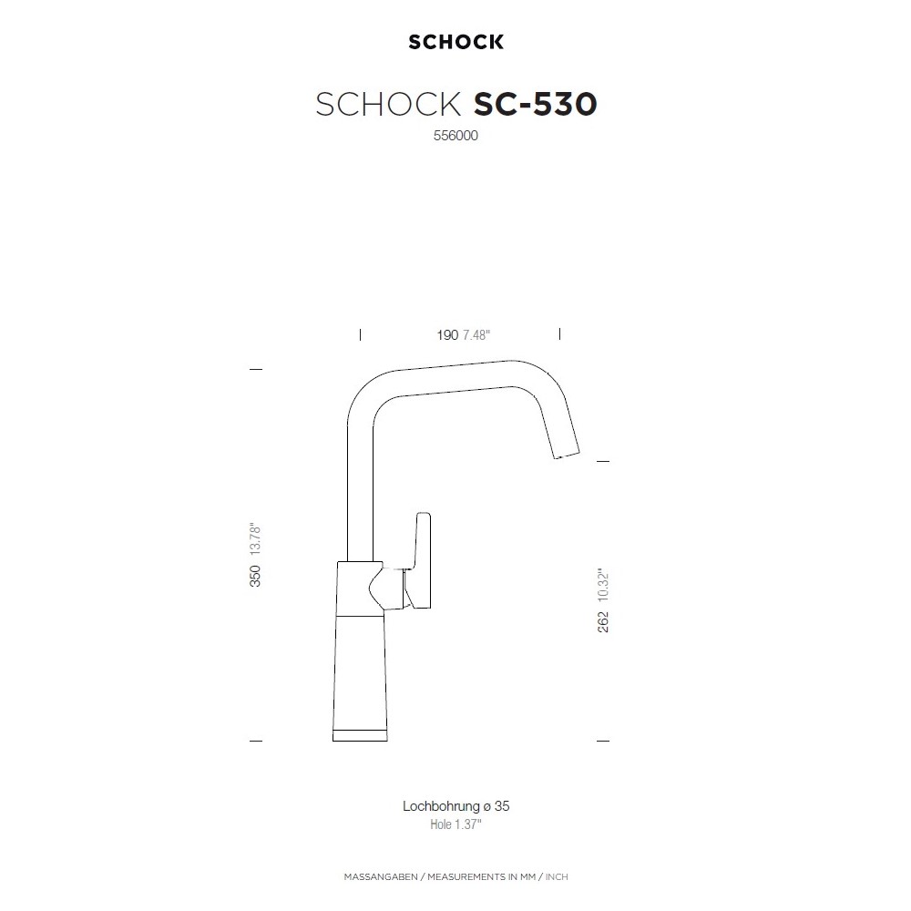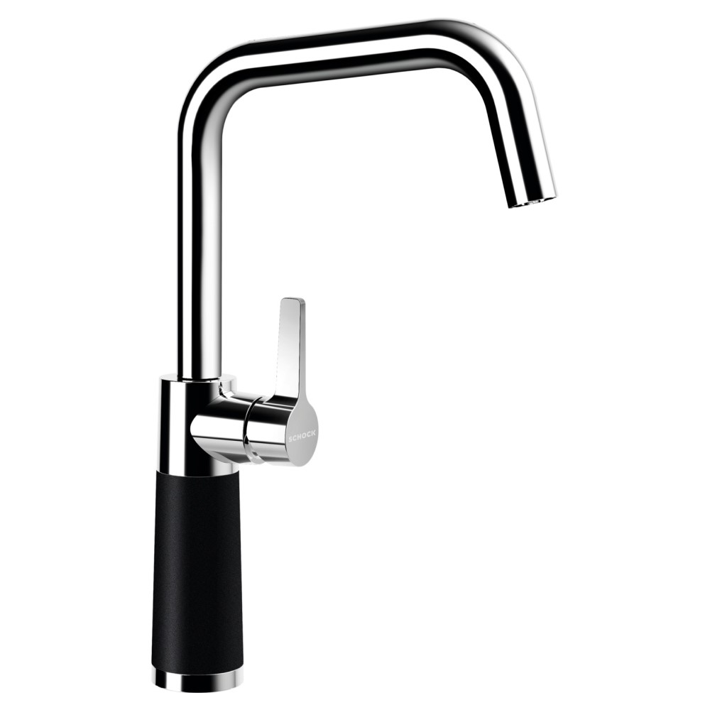 Kuhinjska armatura SCHOCK SC-530 556000 je elegantna armatura z visokim izlivom. En del armature je kromiran, drugi del pa je narejen iz naravnega kamna Cristadur®. Kamniti del armature je popolnoma enak kot pri pomivalnih koritih SCHOCK, zato lahko s to armaturo dosežete popolno ujemanje z vašim kamnitim koritom SCHOCK.