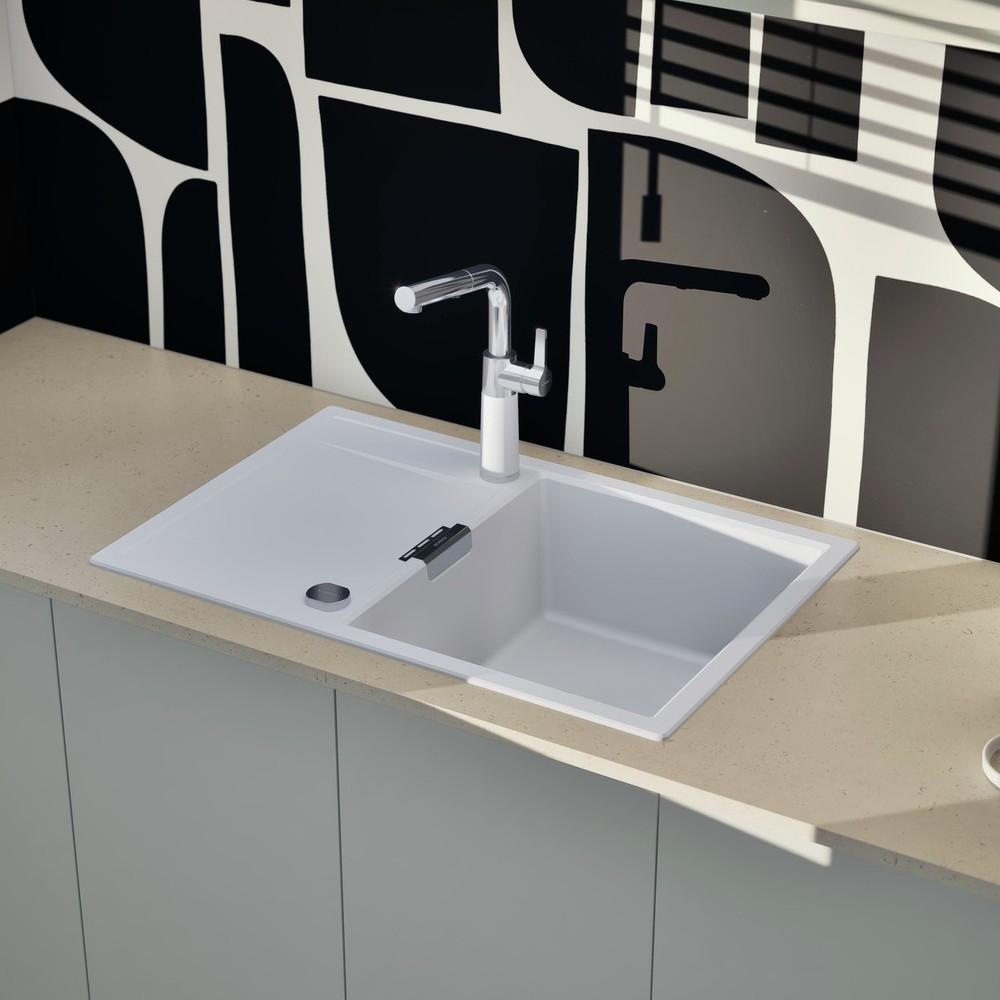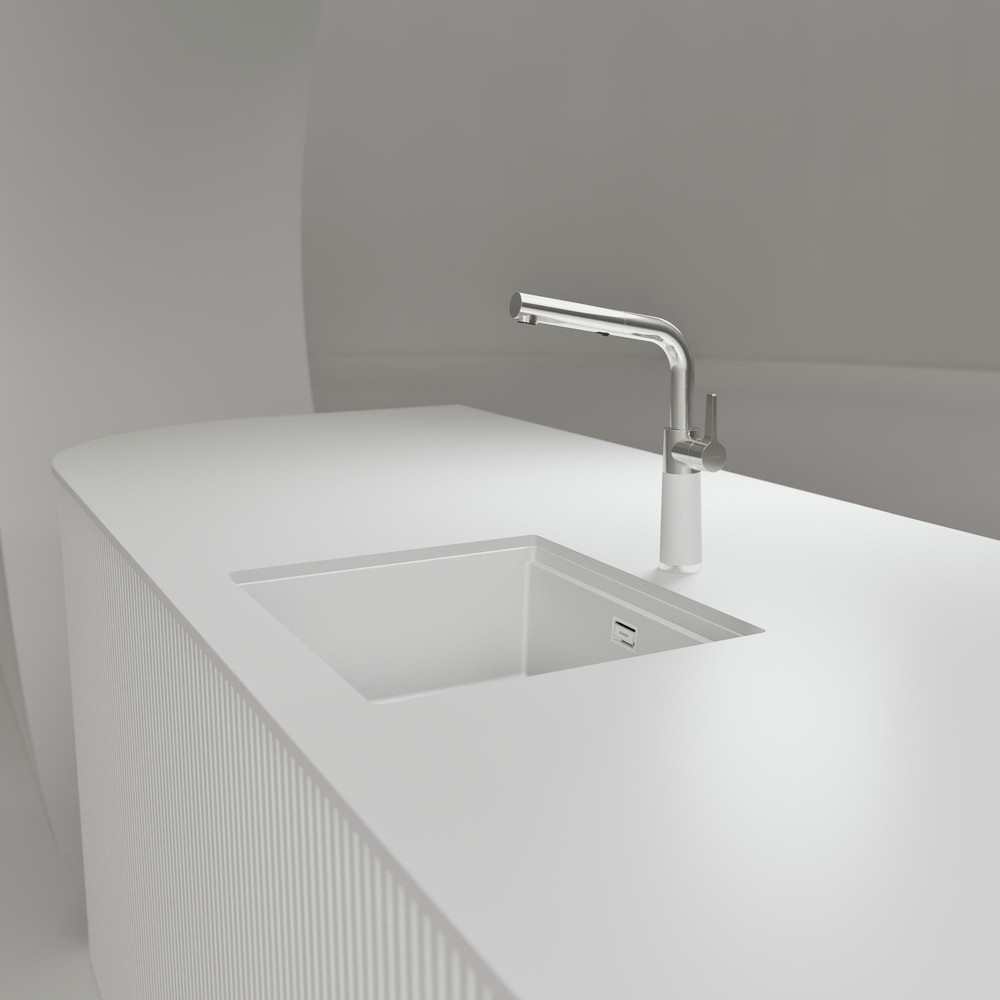 Ta armatura je idealna izbira za vse, ki iščejo preplet estetike in praktičnosti v svoji kuhinji. Njena elegantna bela barva in vrhunska funkcionalnost bosta vaši kuhinji dodali pridih razkošja in sodobnosti.