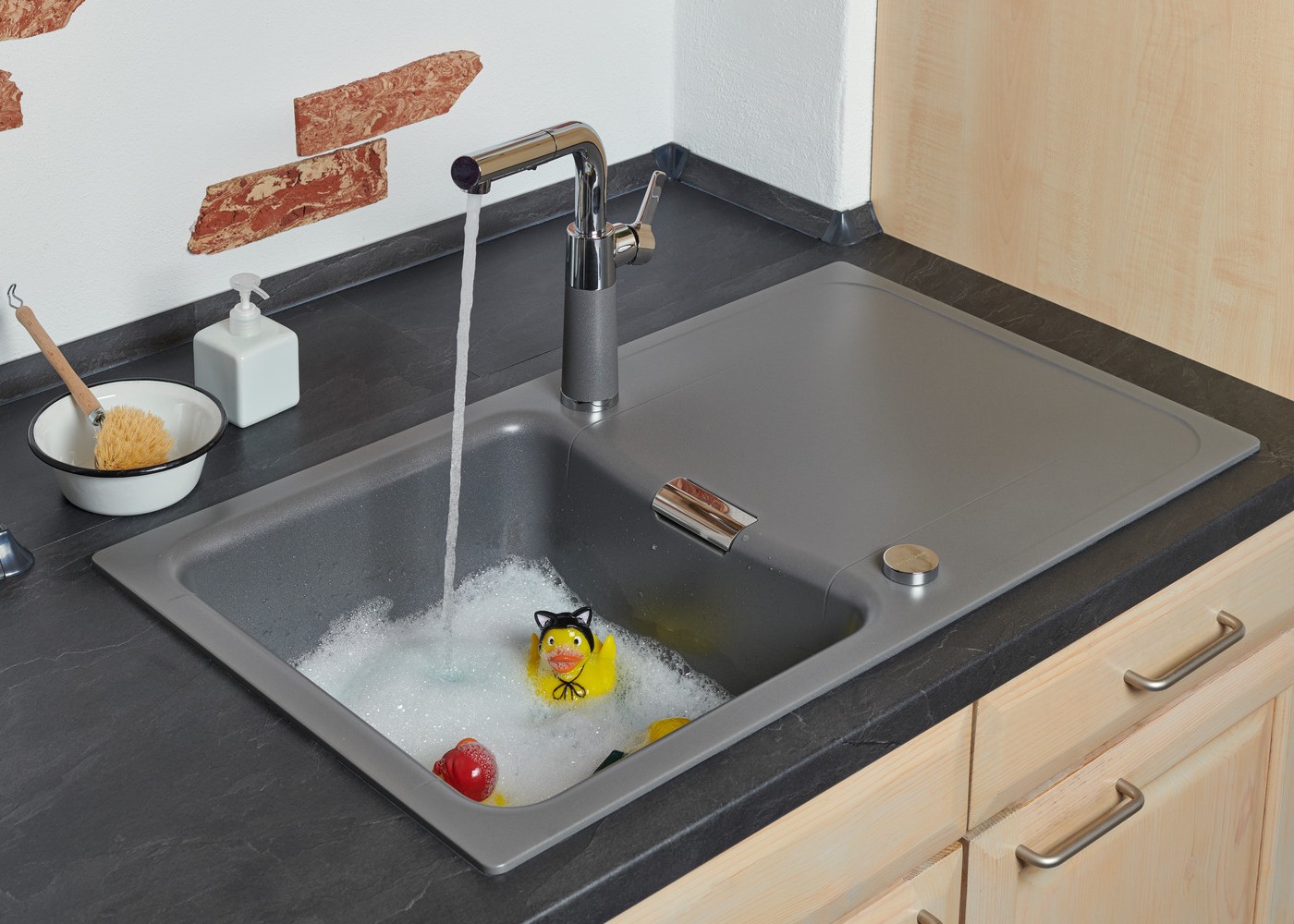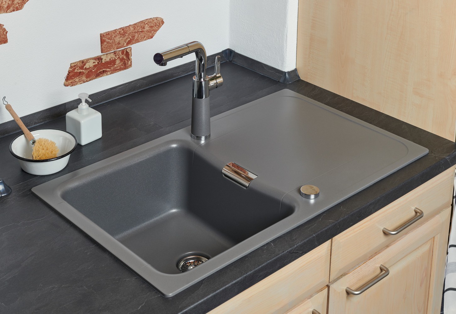Ta armatura je idealna izbira za vse, ki iščejo preplet estetike in praktičnosti v svoji kuhinji. Njena elegantna siva barva in vrhunska funkcionalnost bosta vaši kuhinji dodali pridih razkošja in sodobnosti.